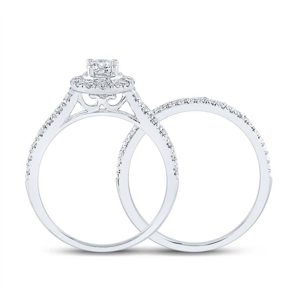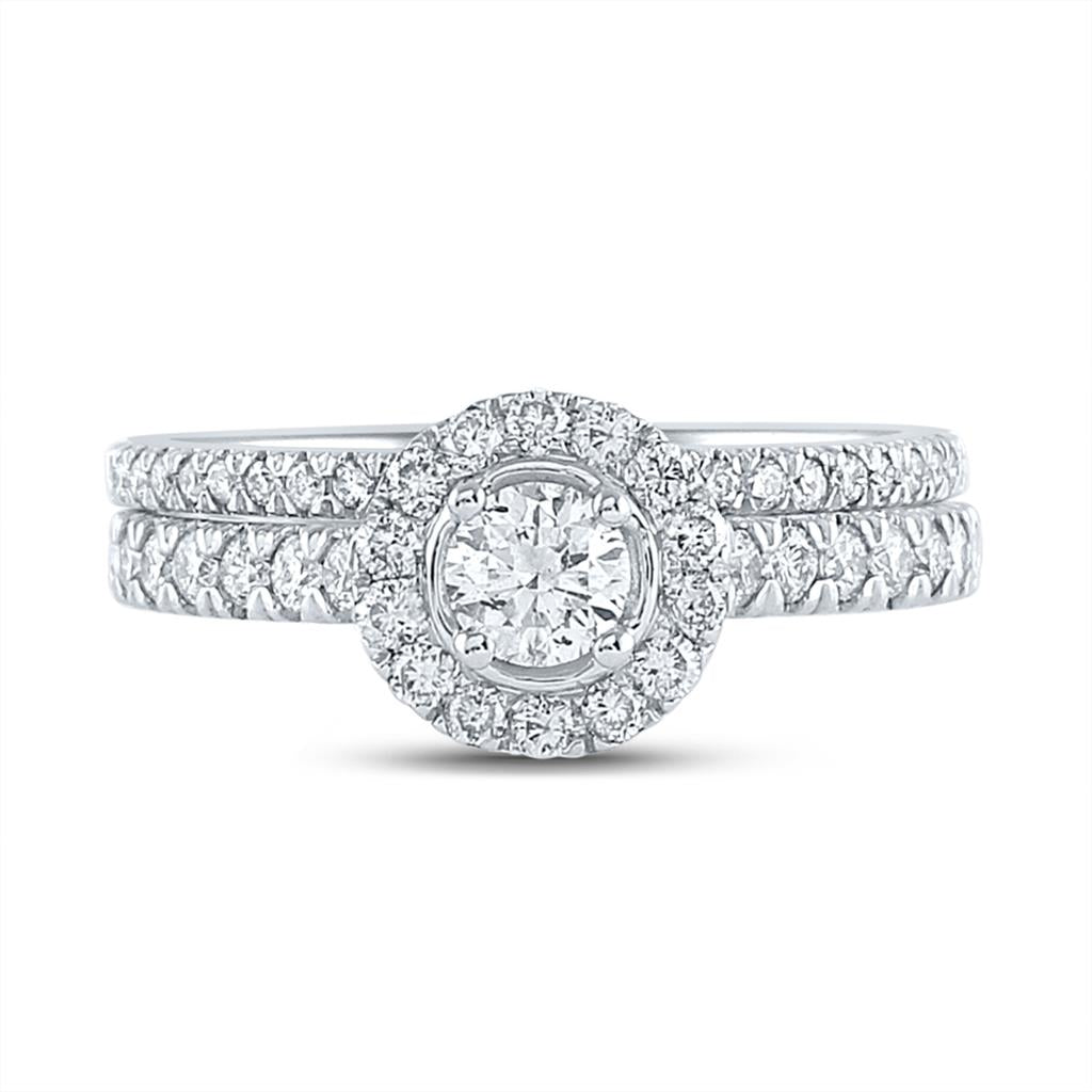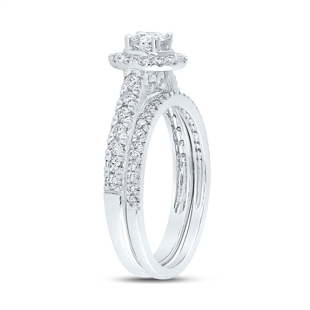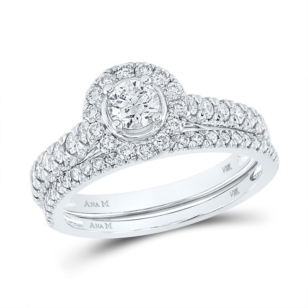 14k White Gold Round Diamond Bridal Wedding Ring Set 1 Cttw (Certified)
