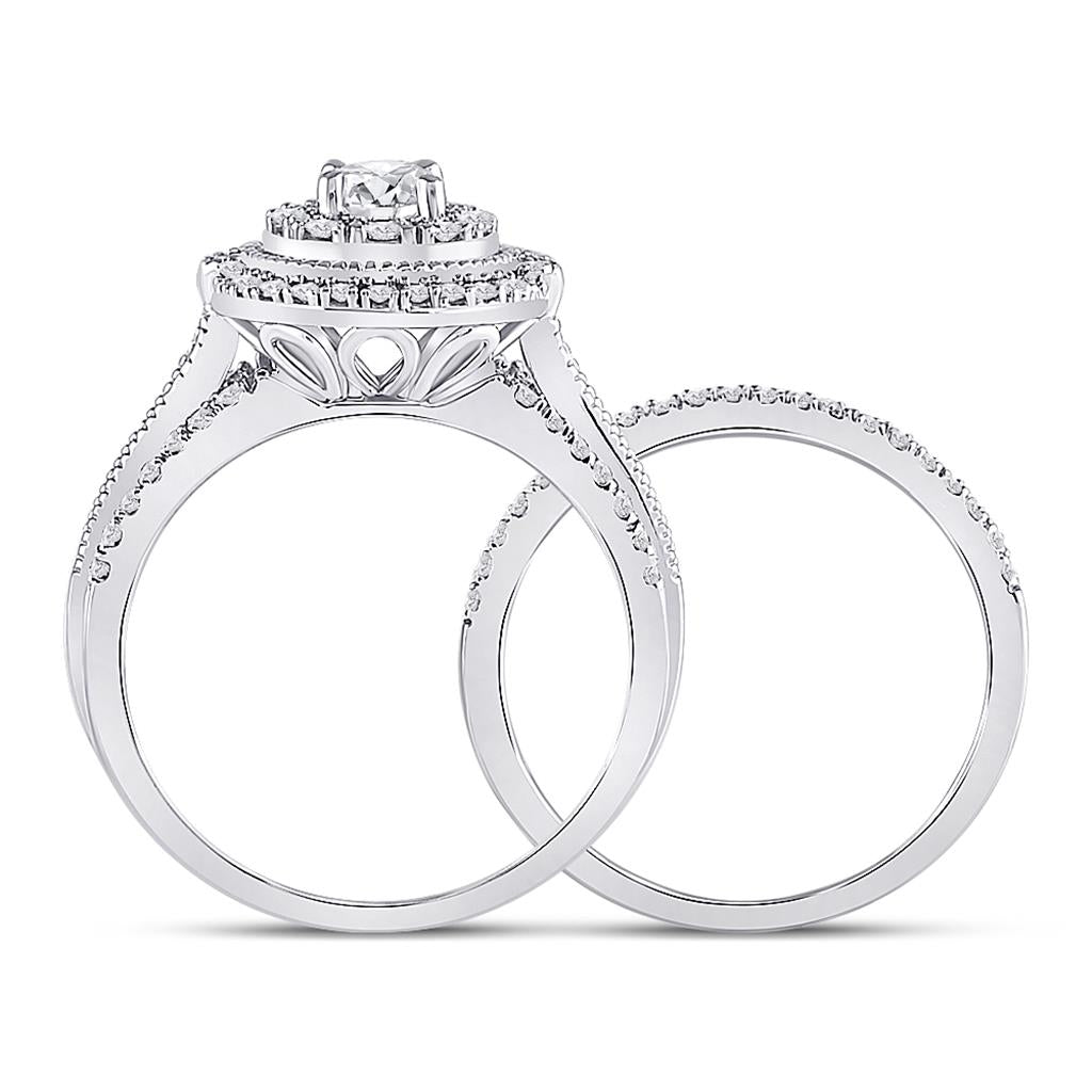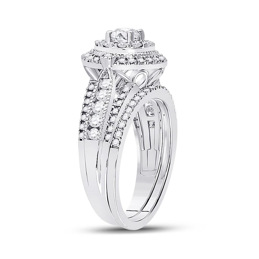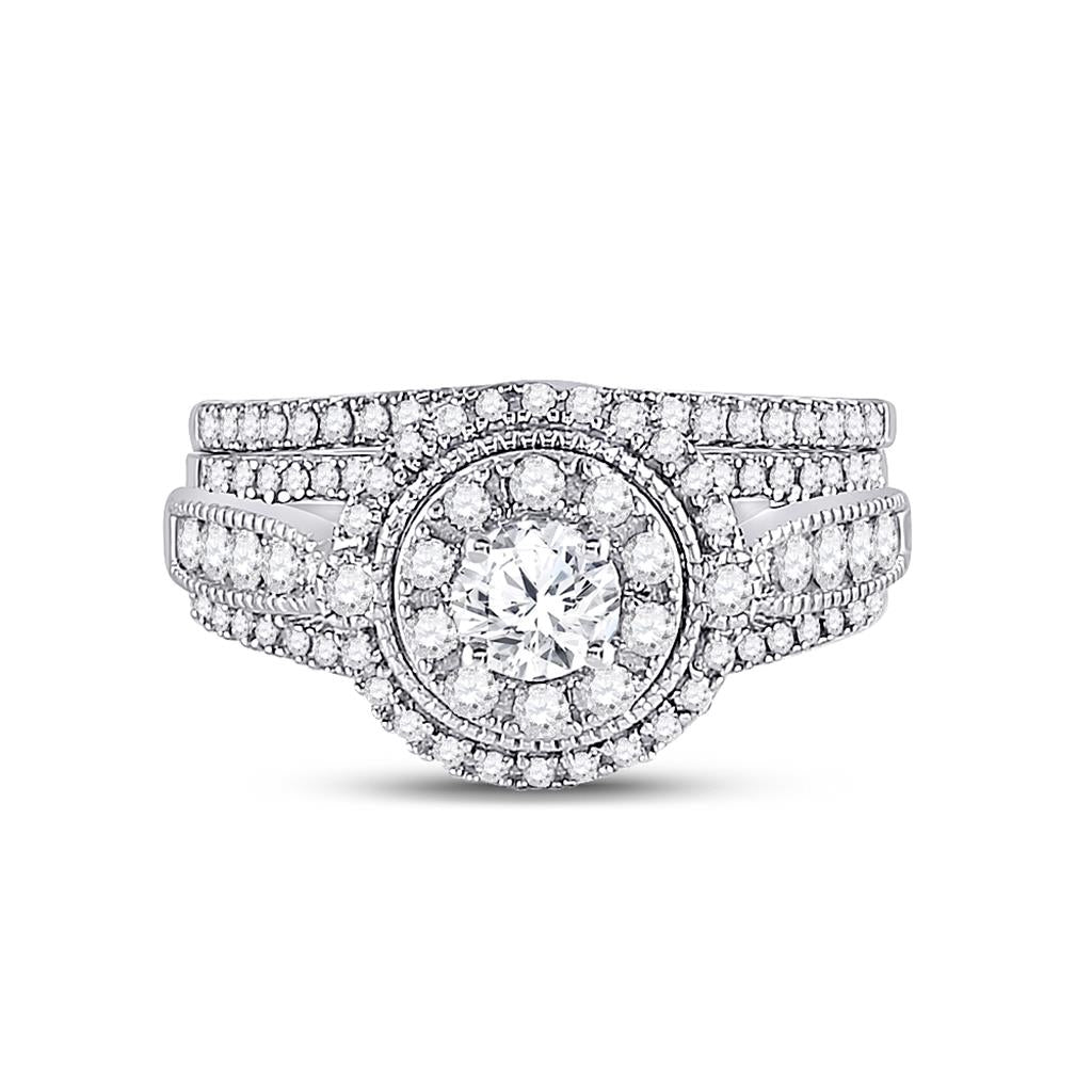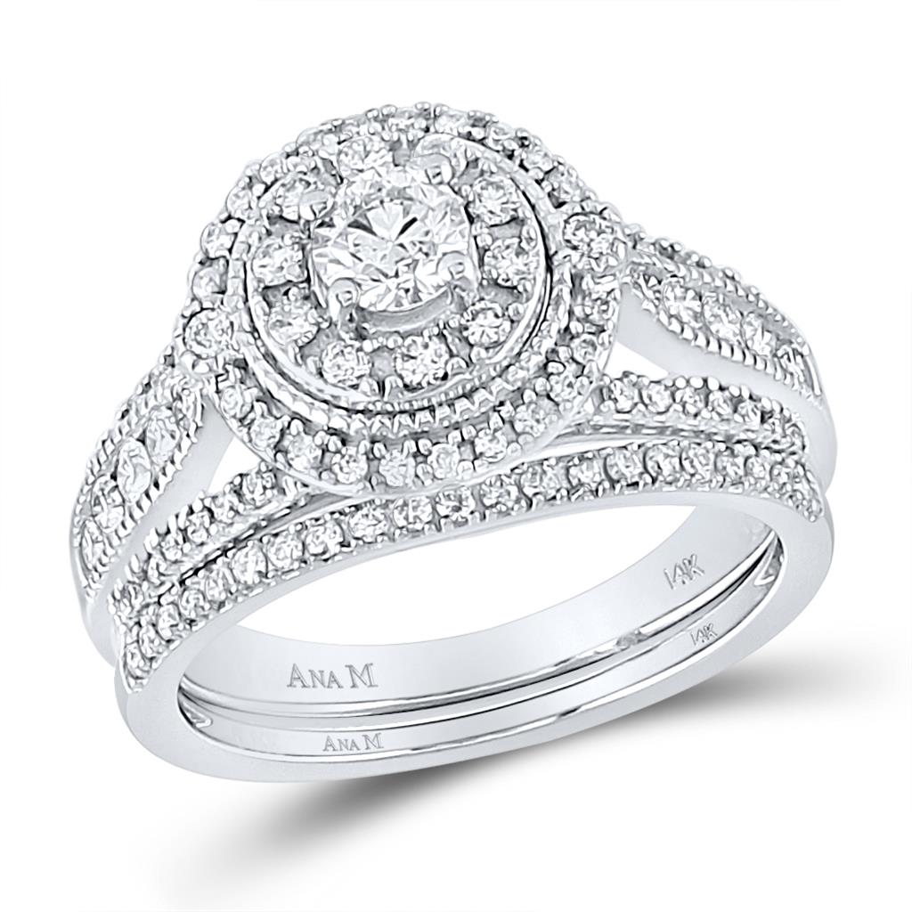 14k White Gold Round Diamond Bridal Wedding Ring Set 1 Cttw (Certified)