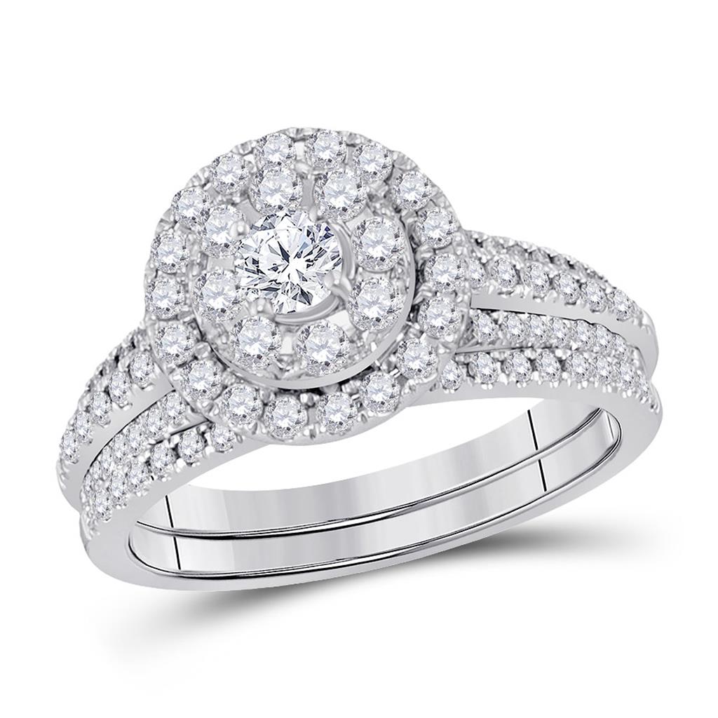 14k White Gold Round Diamond Bridal Wedding Ring Set 1 Cttw (Certified)