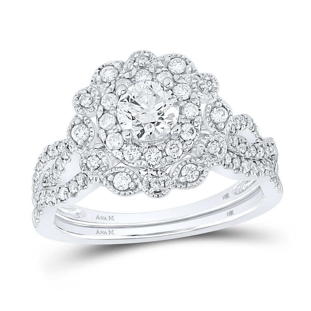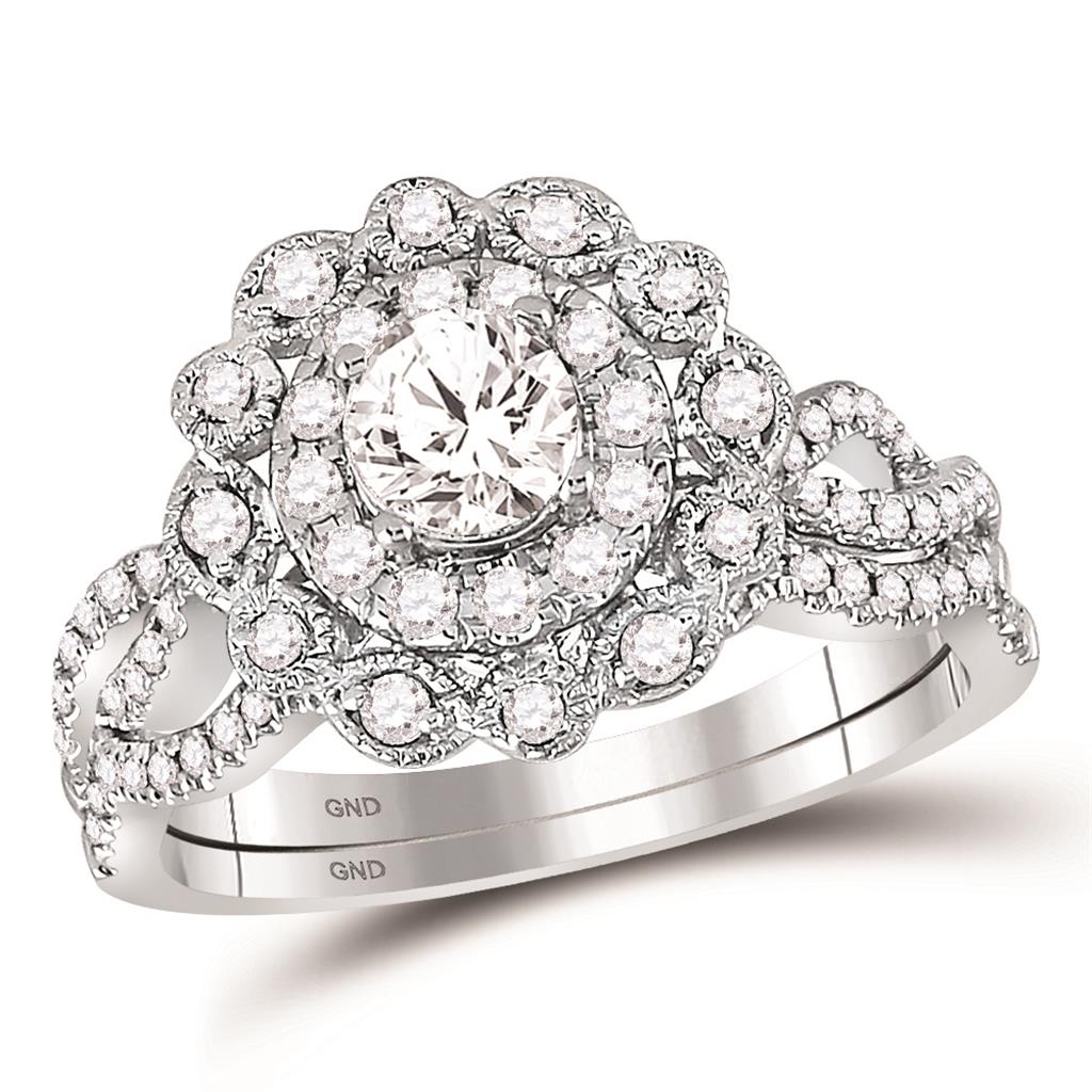 14k White Gold Round Diamond Bridal Wedding Ring Set 1 Cttw (Certified)