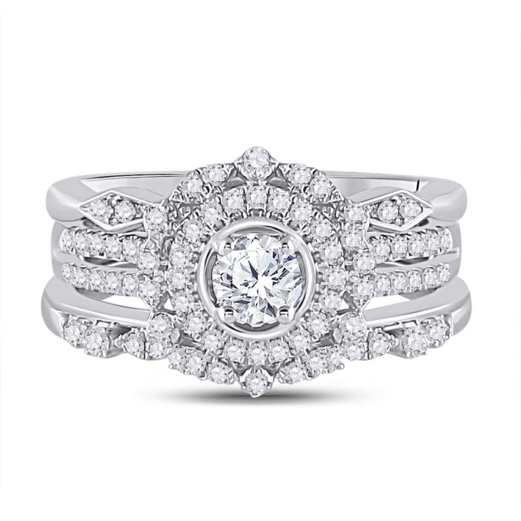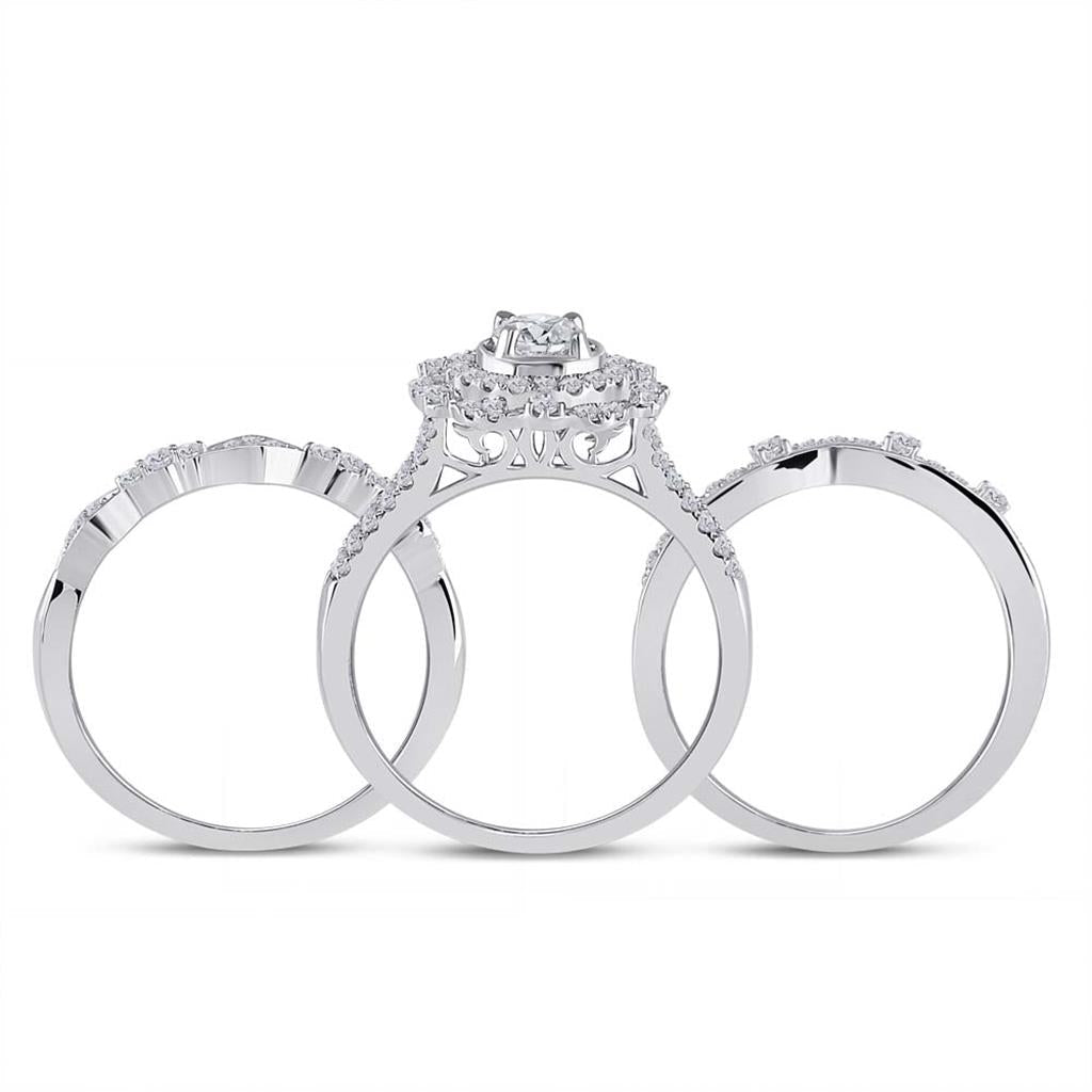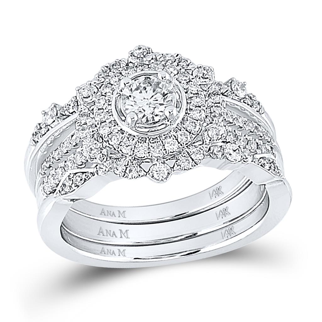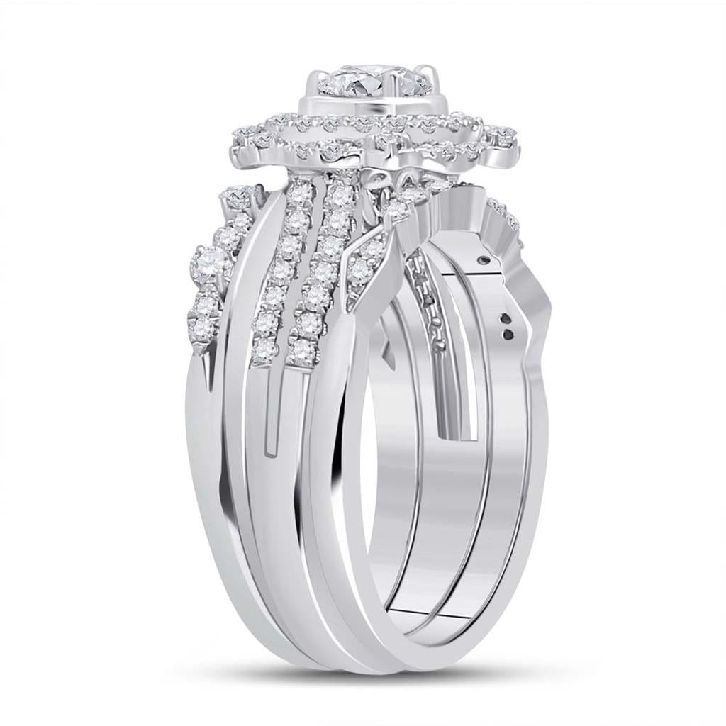 14k White Gold Round Diamond Bridal Wedding Ring Set 1 Cttw (Certified)