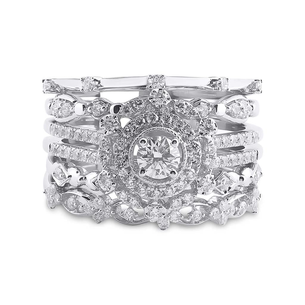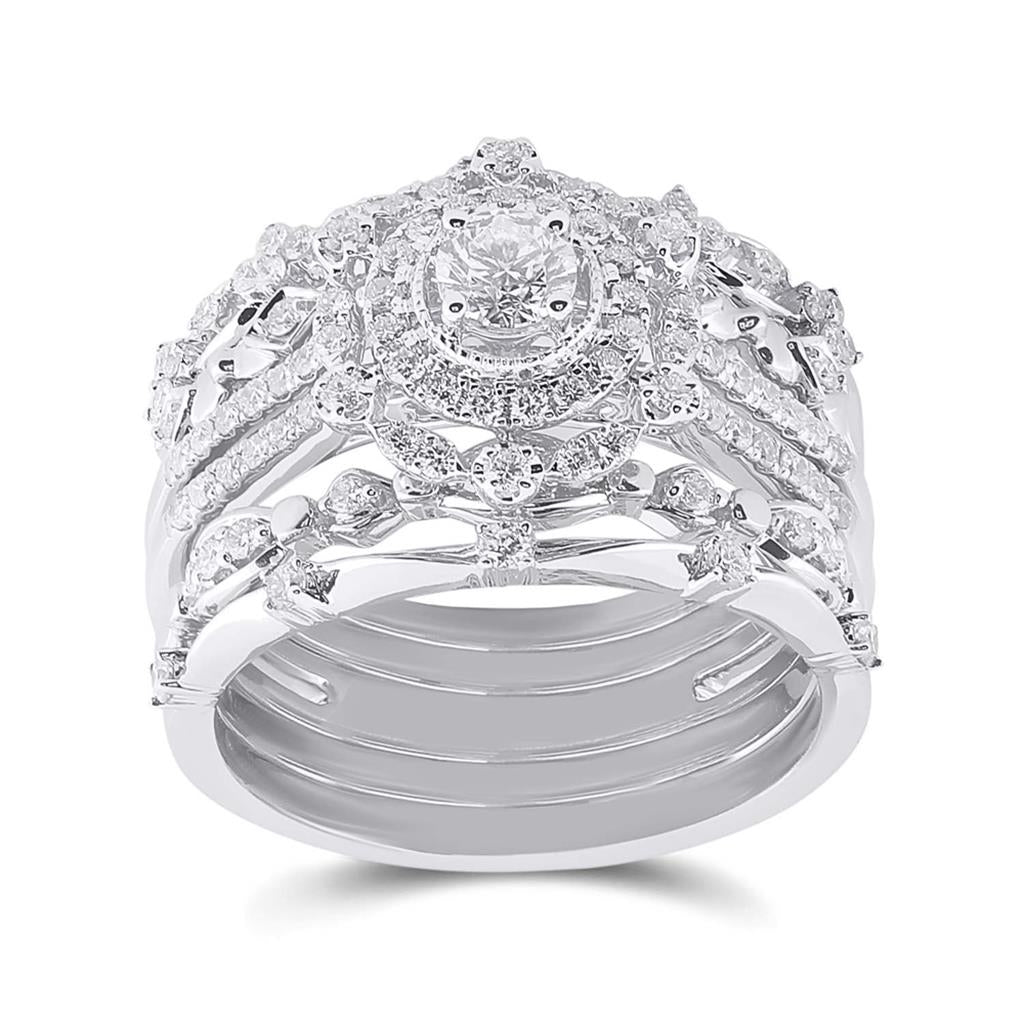 14k White Gold Round Diamond Bridal Wedding Ring Set 1 Cttw (Certified)