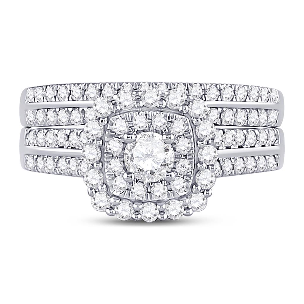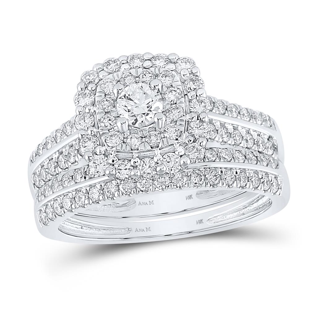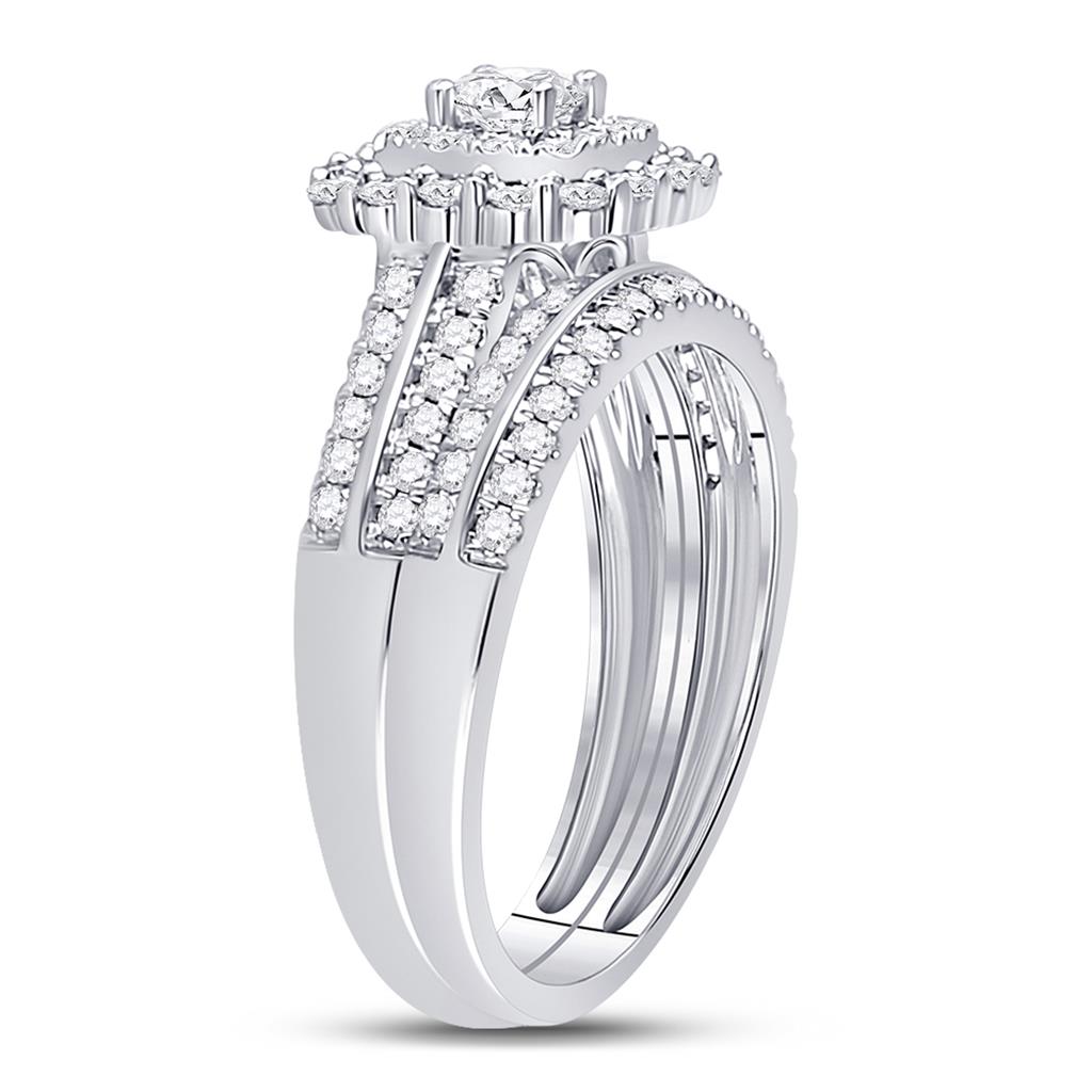 14k White Gold Round Diamond Bridal Wedding Ring Set 1 Cttw (Certified)