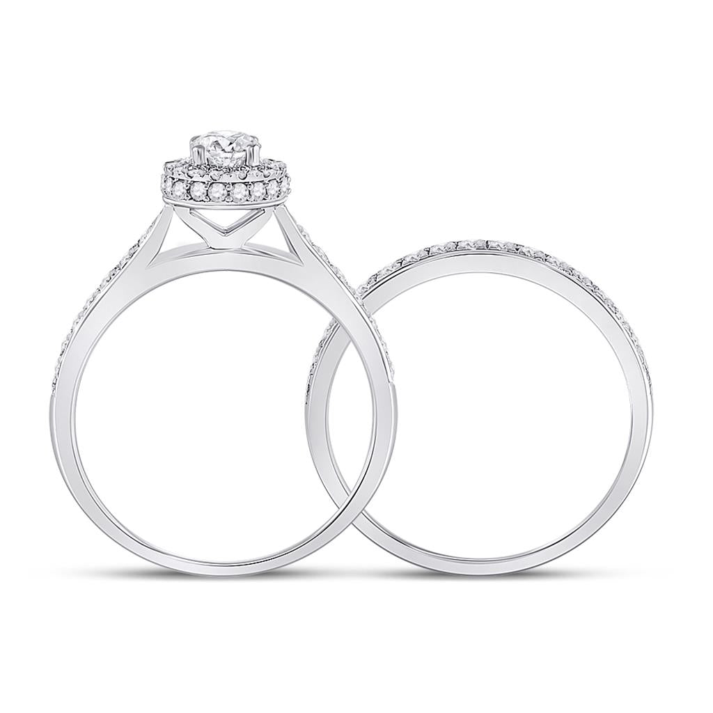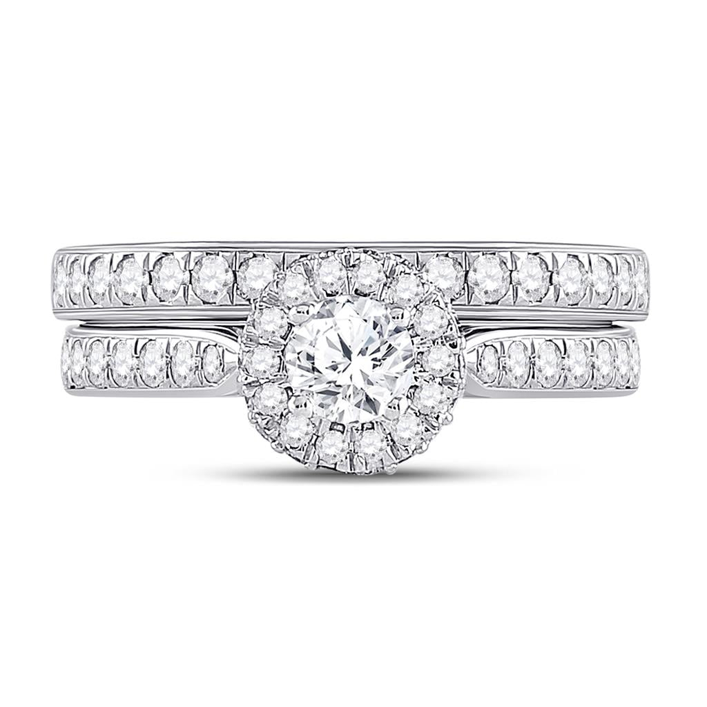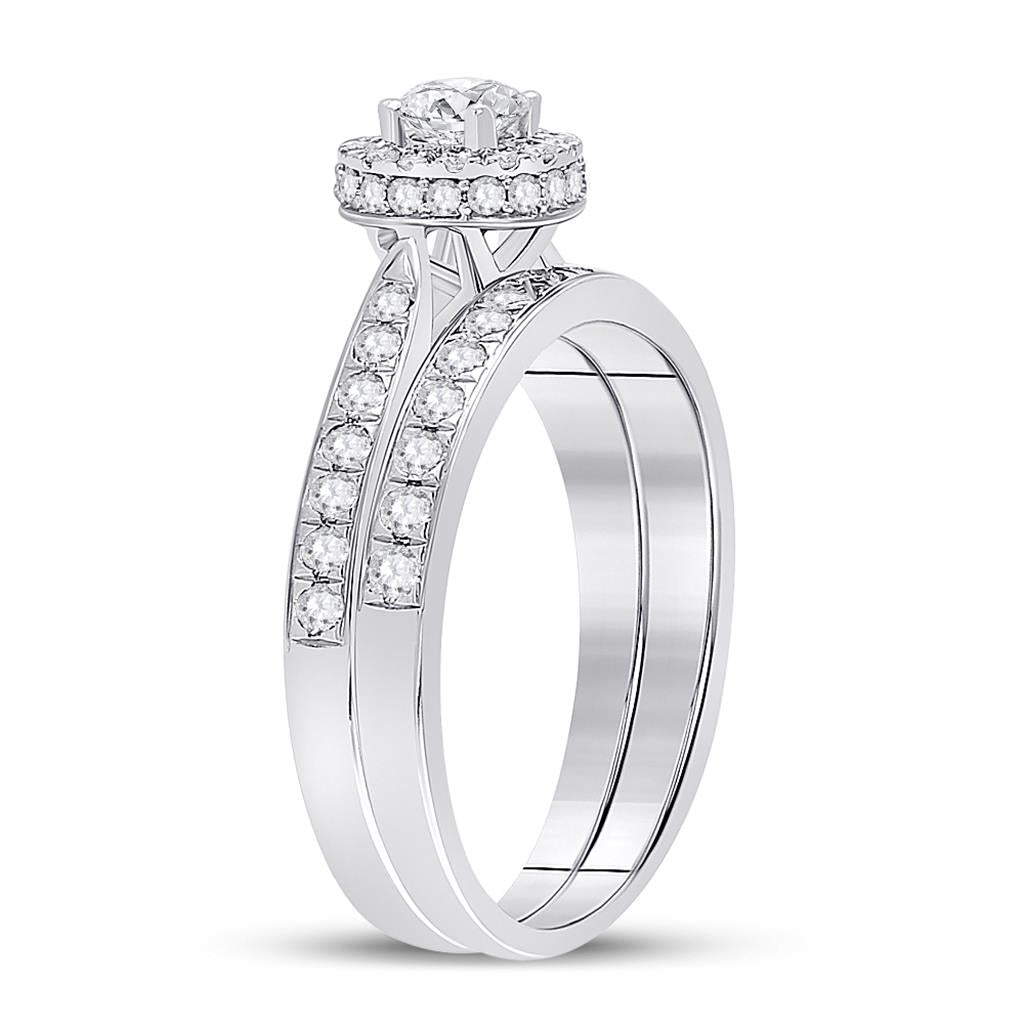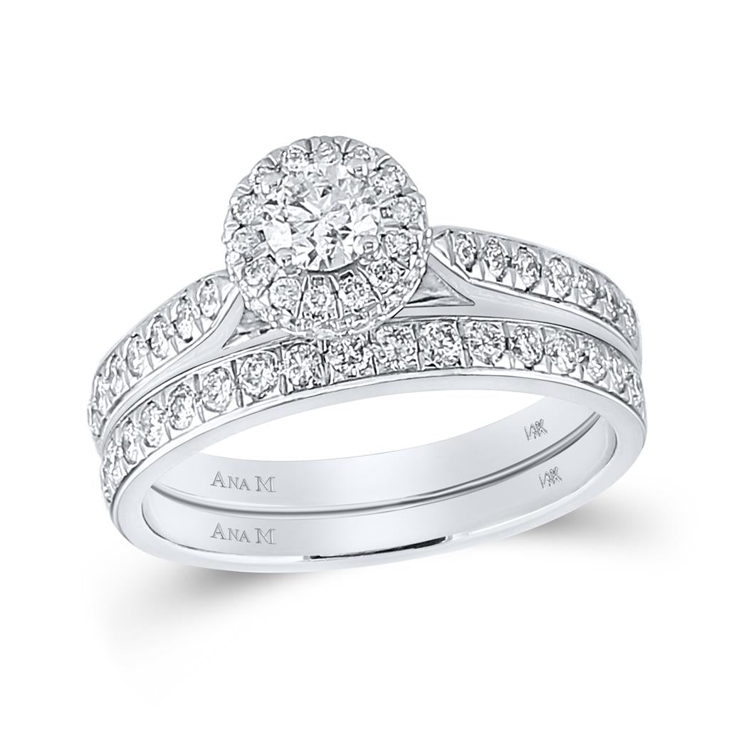 14k White Gold Round Diamond Bridal Wedding Ring Set 1 Cttw (Certified)