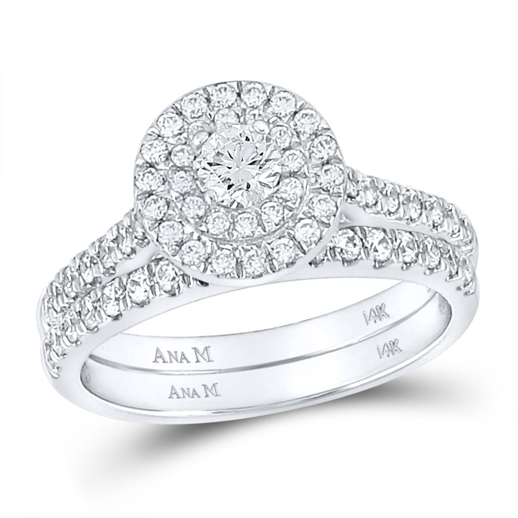 14k White Gold Round Diamond Bridal Wedding Ring Set 1 Cttw (Certified)