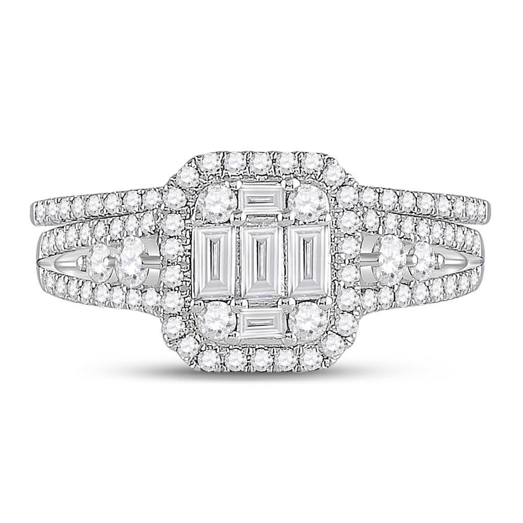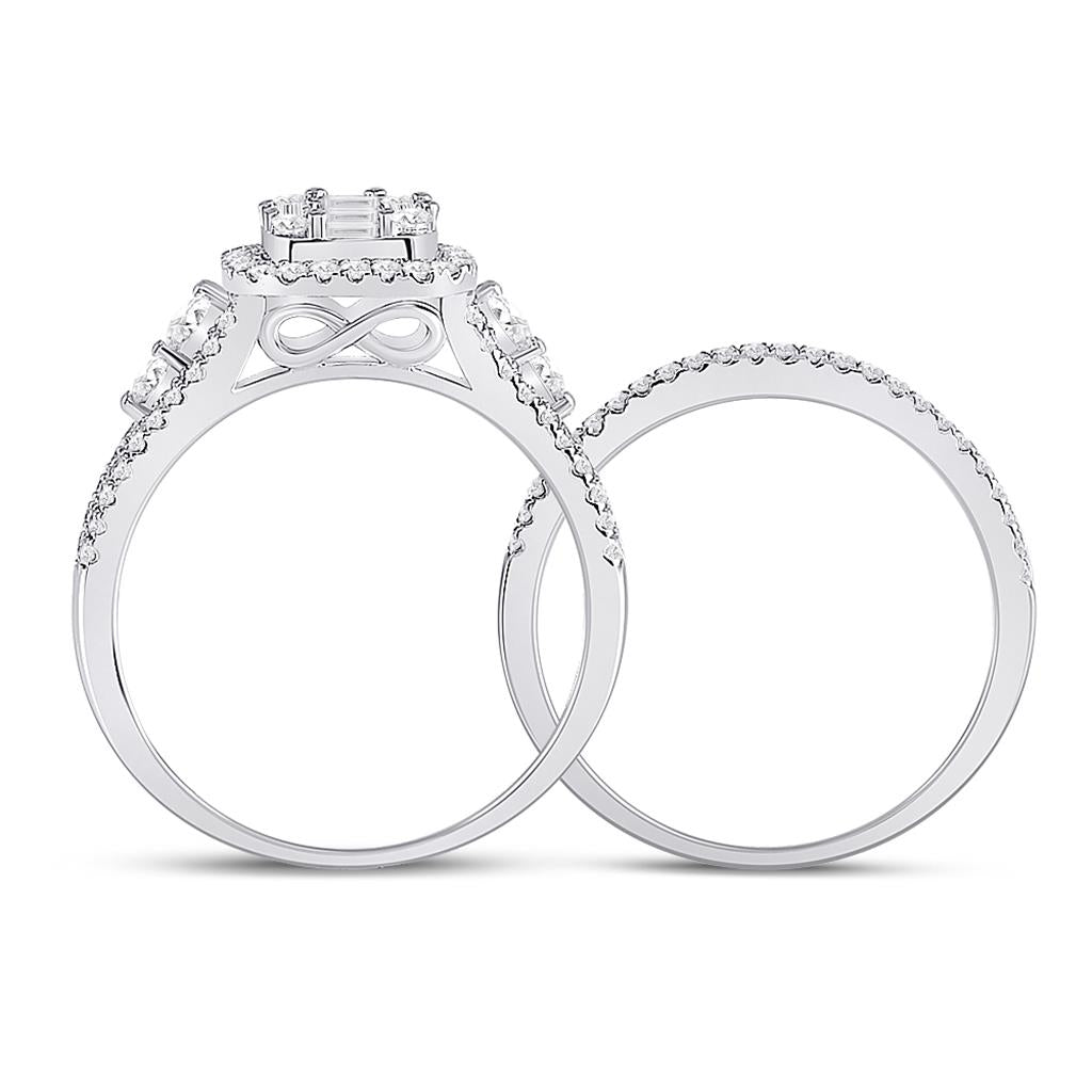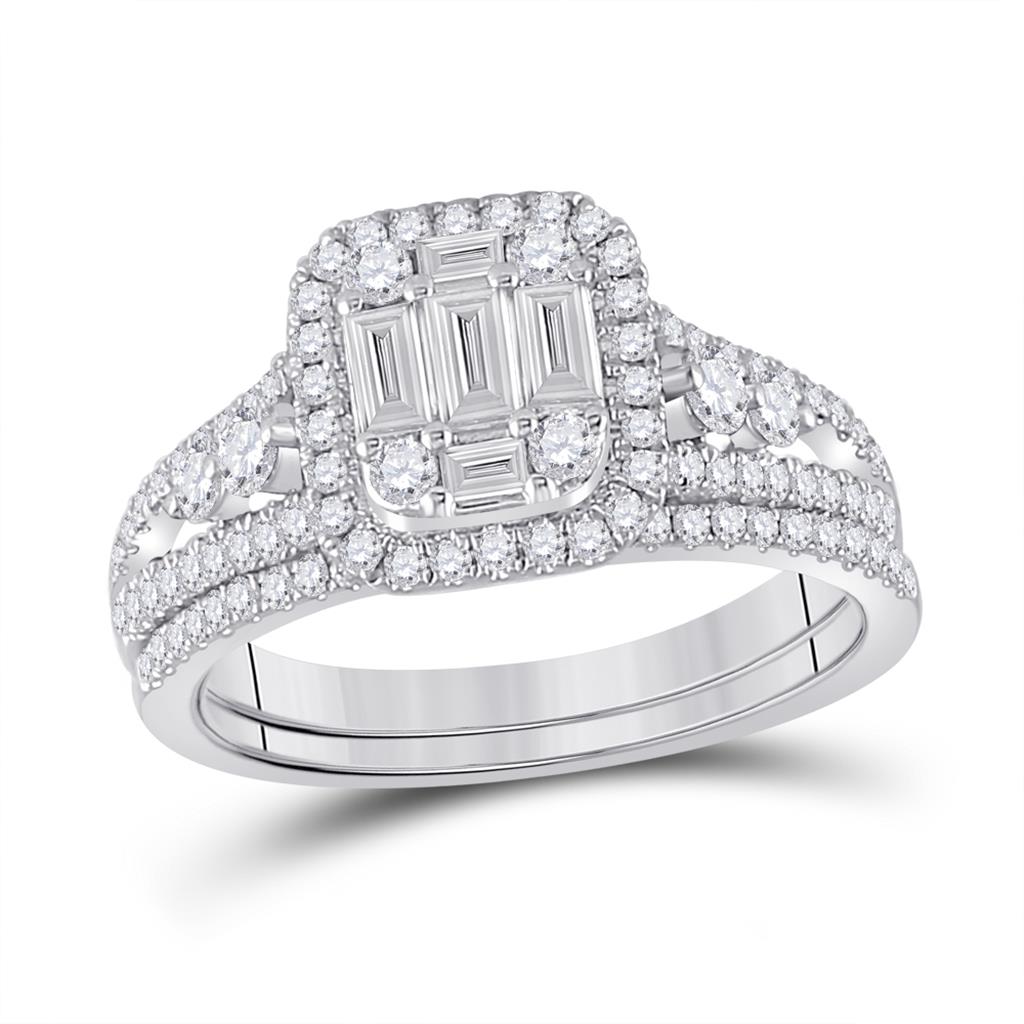 14k White Gold Round Diamond Bridal Wedding Ring Set 1 Cttw