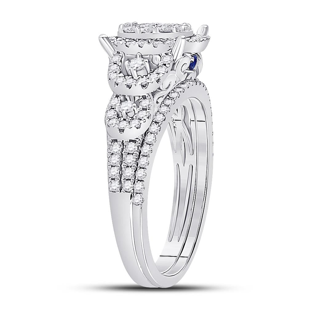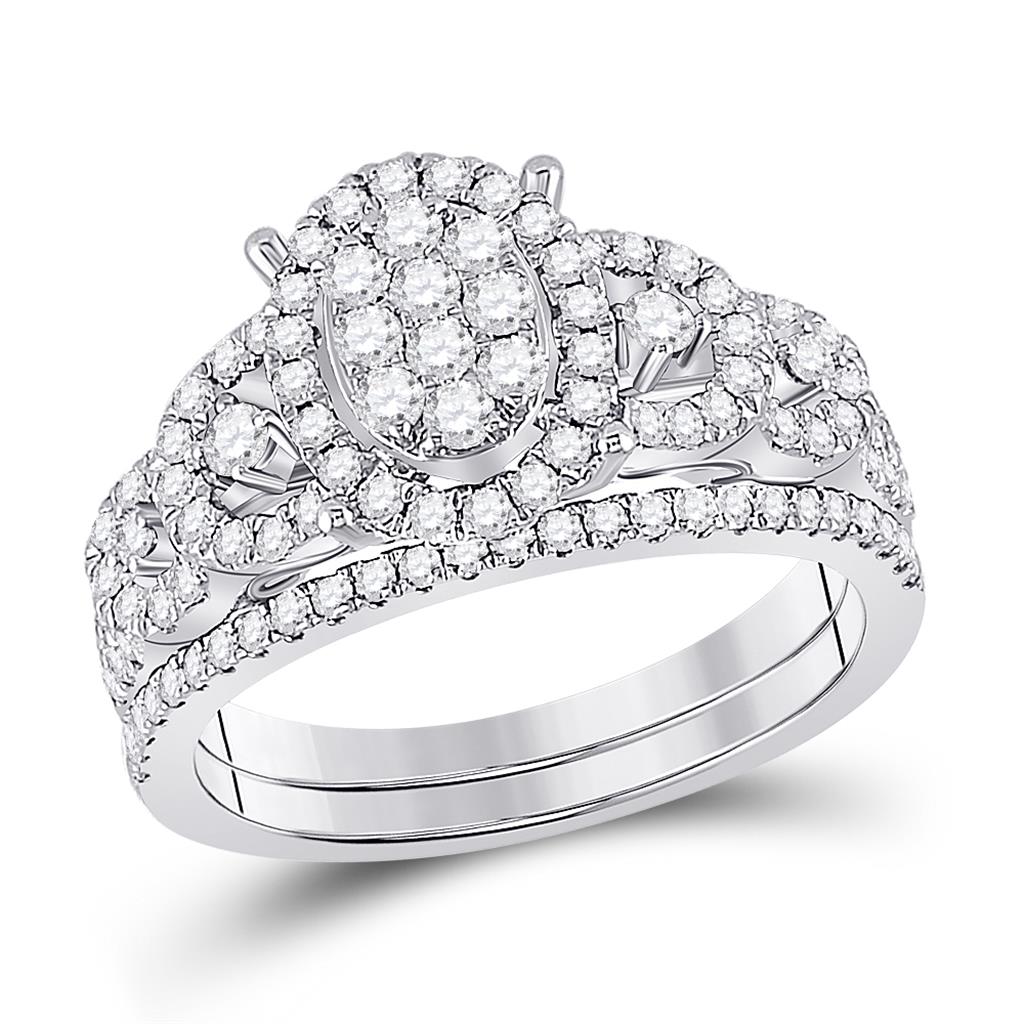 14k White Gold Round Diamond Bridal Wedding Ring Set 1 Cttw