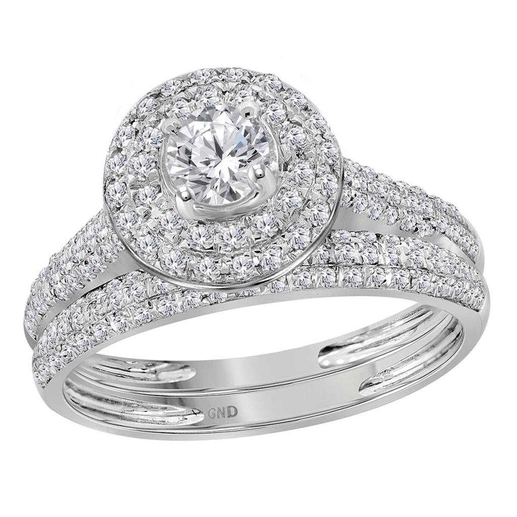 14k White Gold Round Diamond Bridal Wedding Ring Set 1 Cttw