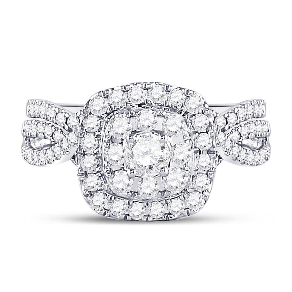 14k White Gold Round Diamond Bridal Wedding Ring Set 1 Ctw (Certified)