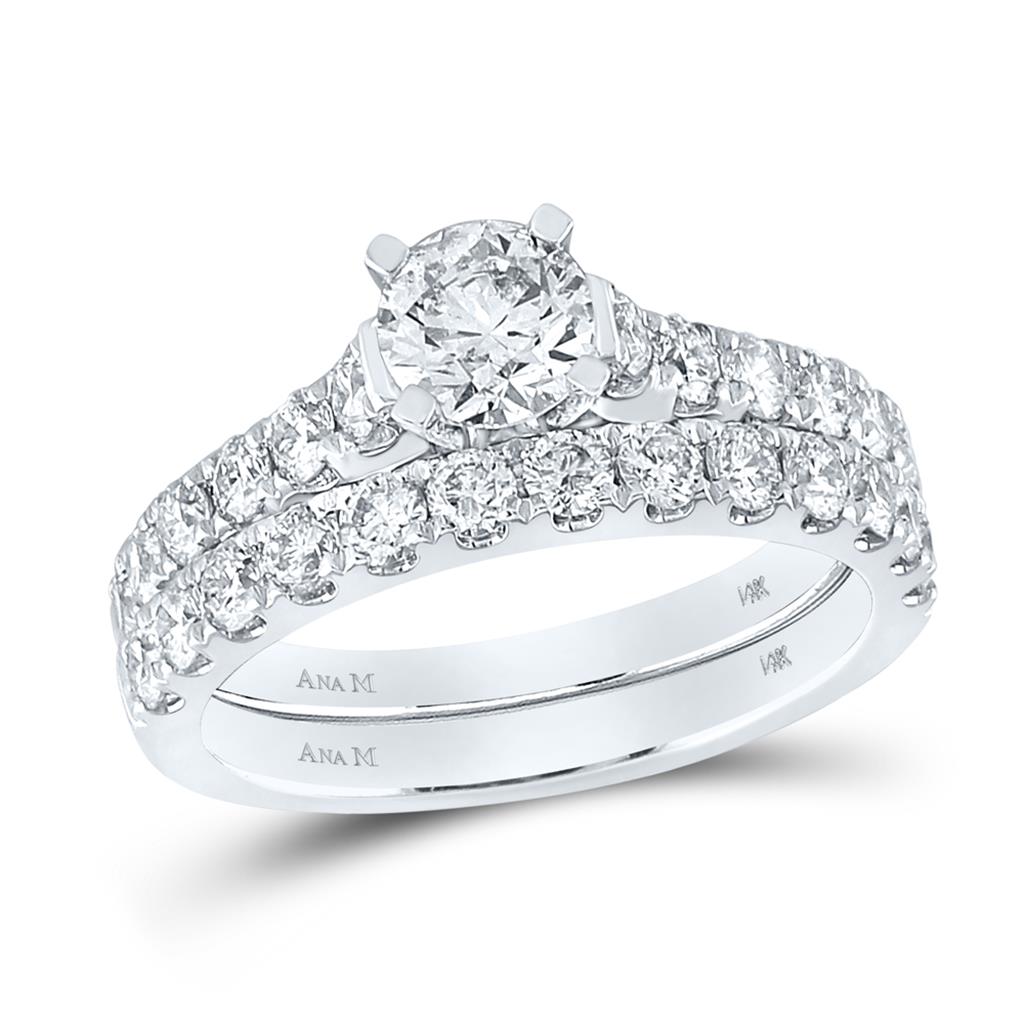 14k White Gold Round Diamond Bridal Wedding Ring Set 2 Cttw (Certified)