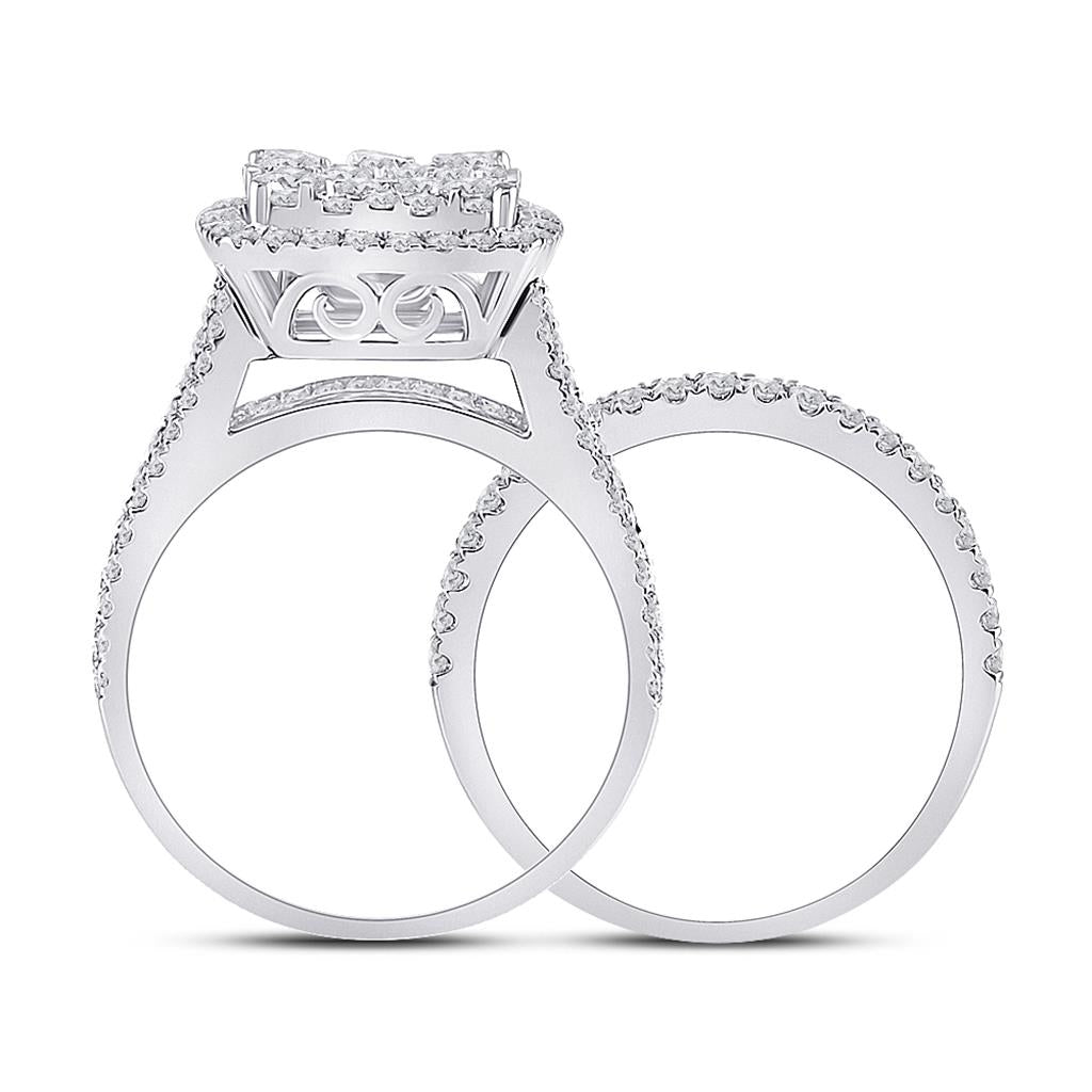 14k White Gold Round Diamond Bridal Wedding Ring Set 2 Cttw