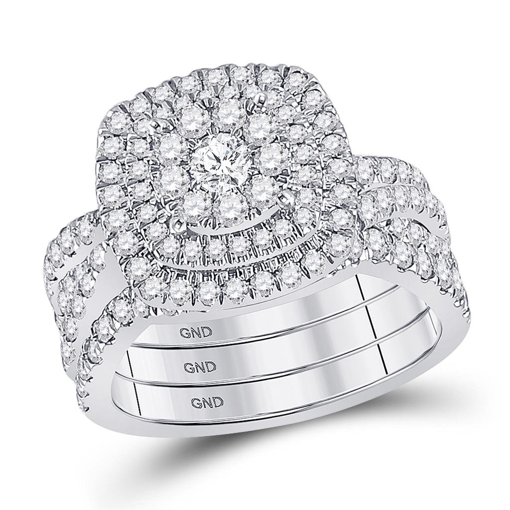 14k White Gold Round Diamond Bridal Wedding Ring Set 2 Cttw