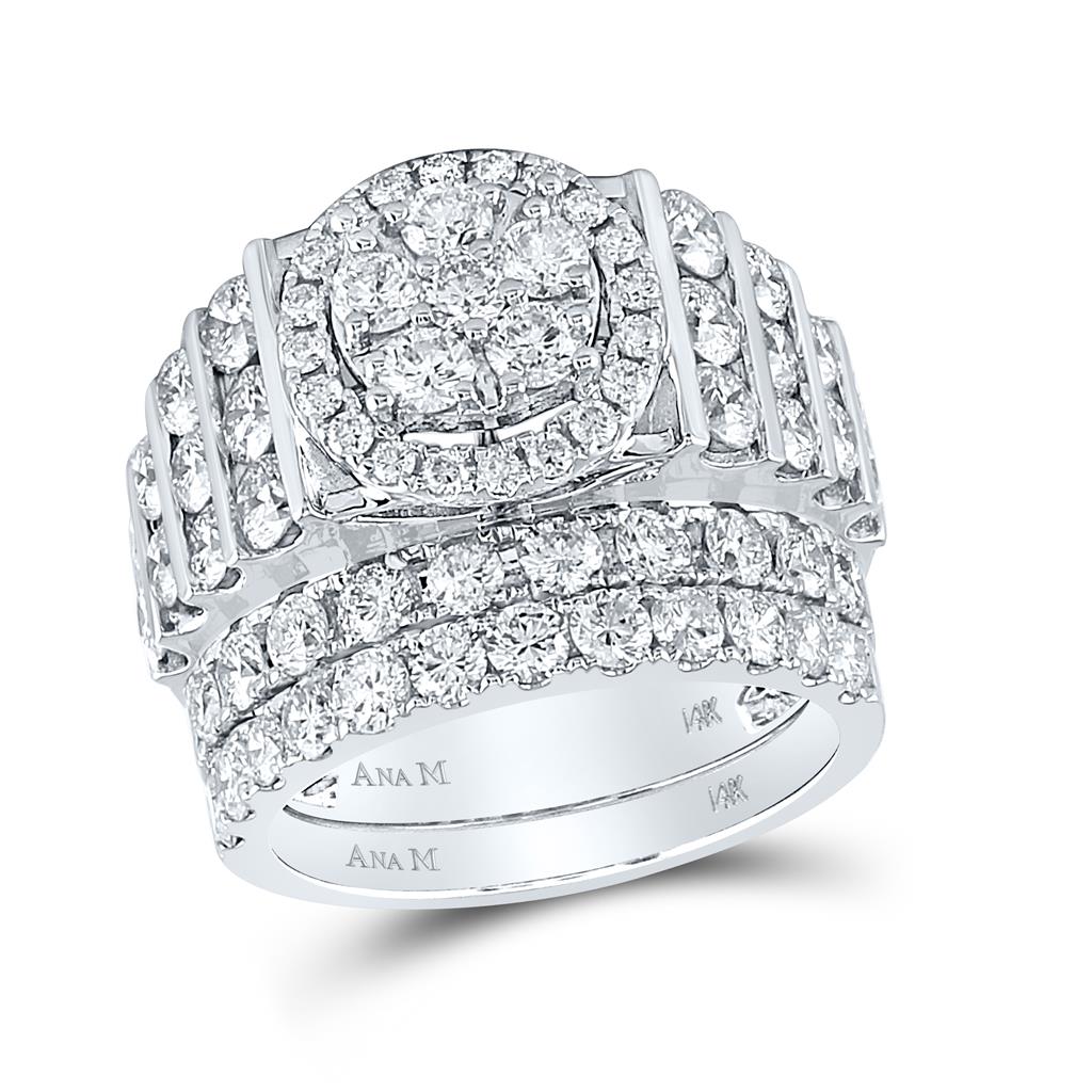 14k White Gold Round Diamond Bridal Wedding Ring Set 3-5/8 Cttw