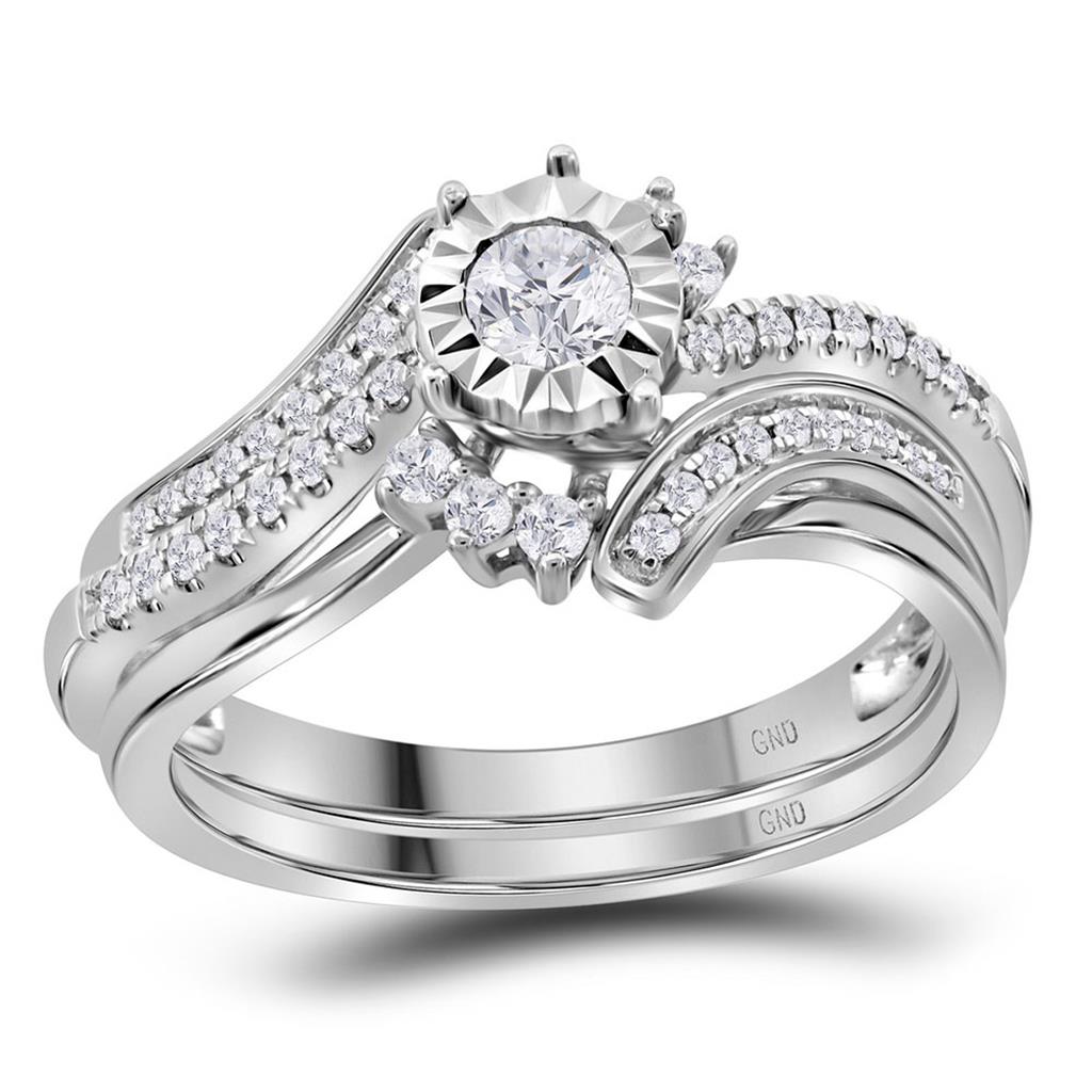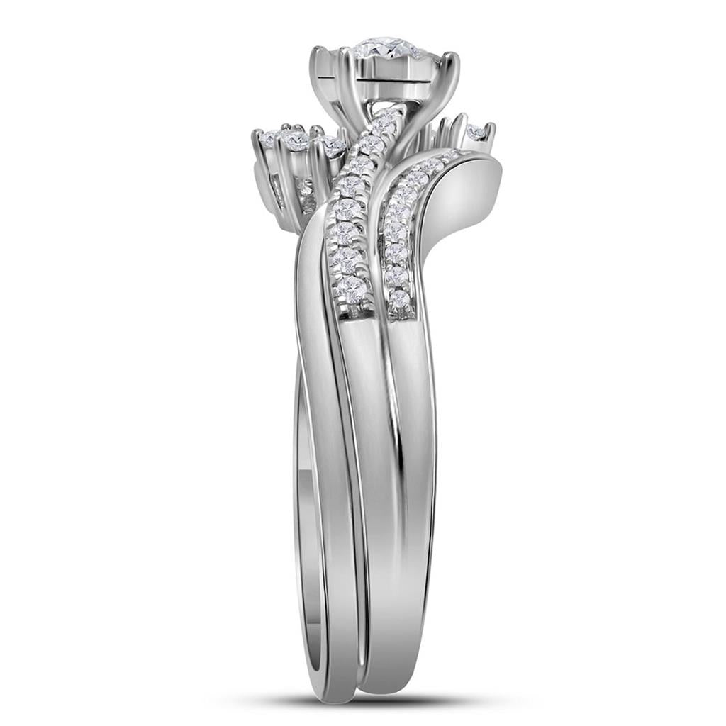 14k White Gold Round Diamond Bridal Wedding Ring Set 3/8 Cttw (Certified)