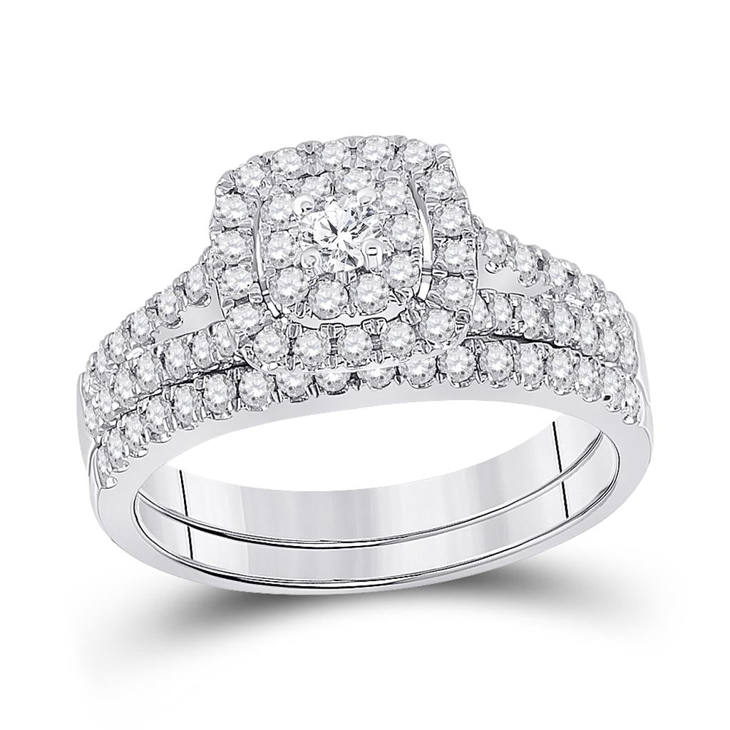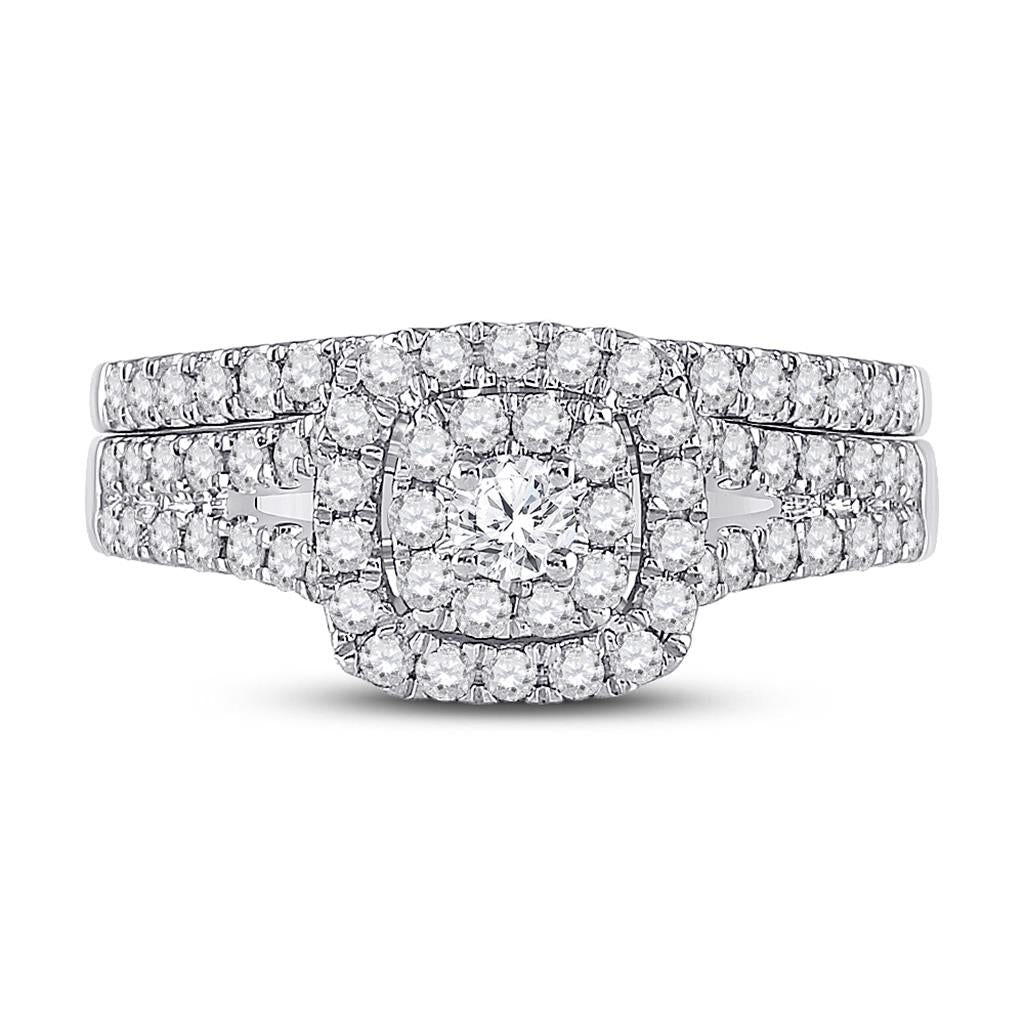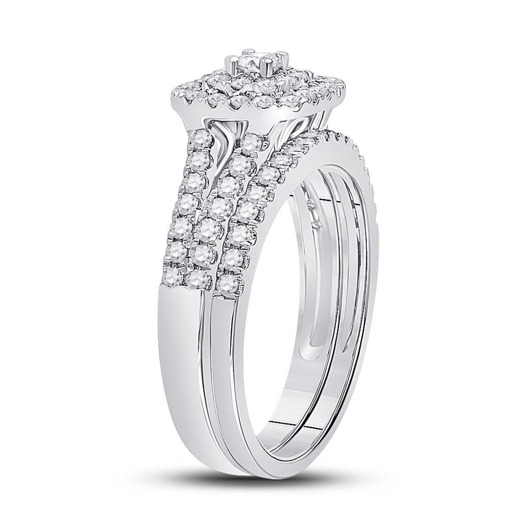 14k White Gold Round Diamond Bridal Wedding Ring Set 7/8 Cttw