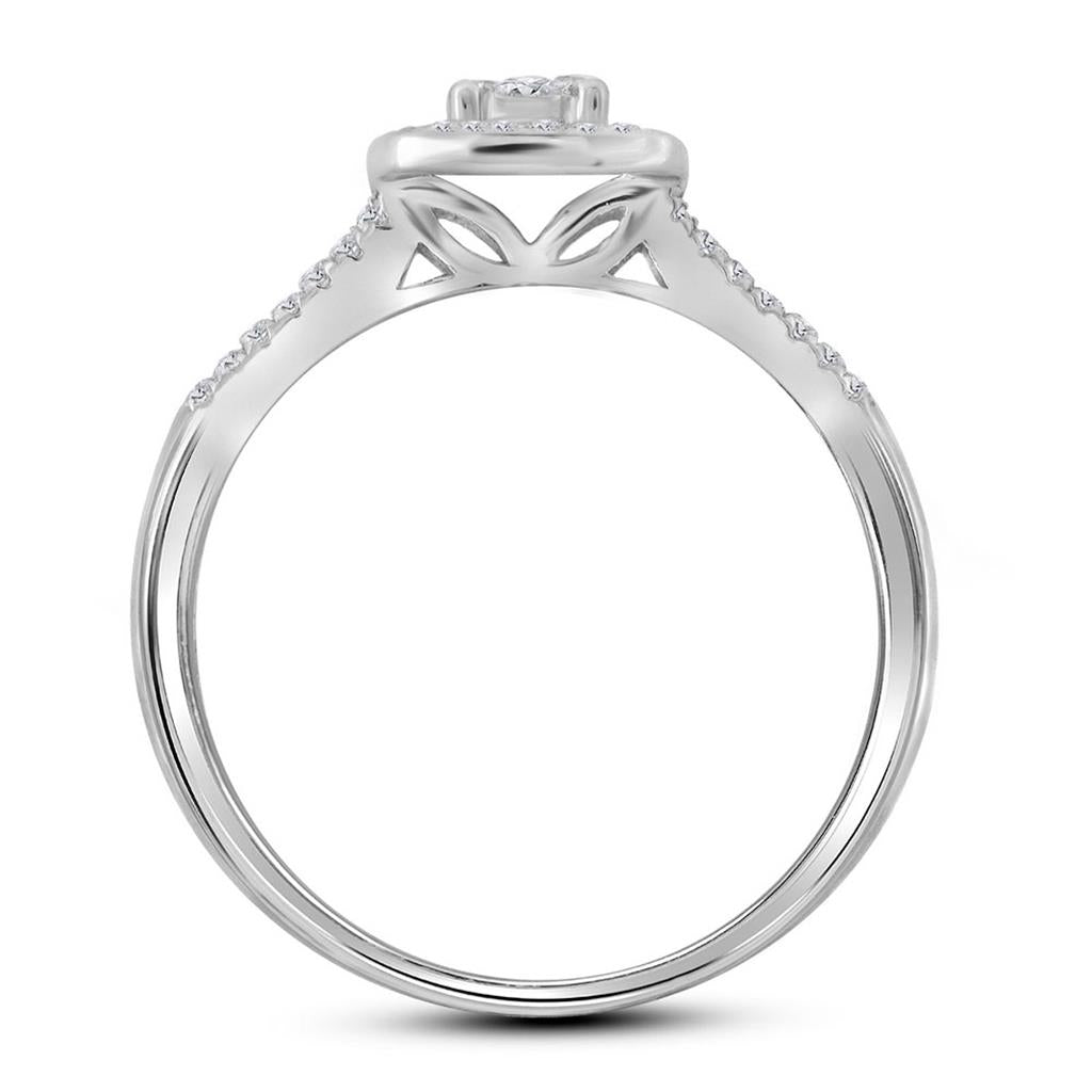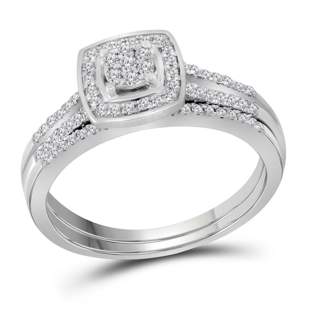 14k White Gold Round Diamond Cluster Bridal Wedding Ring Set 1/3 Cttw