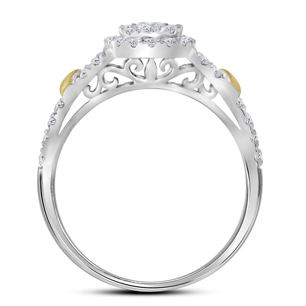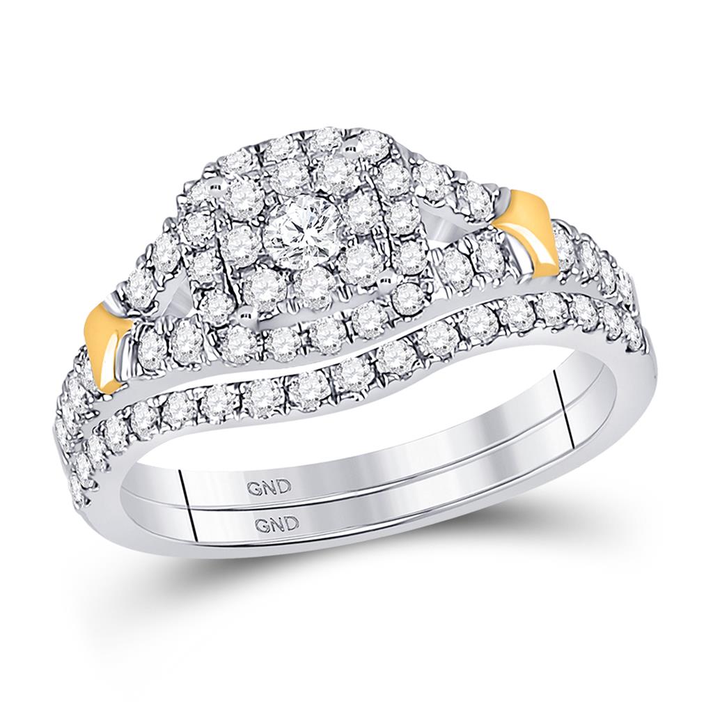 14k White Gold Round Diamond Cluster Bridal Wedding Ring Set 7/8 Cttw