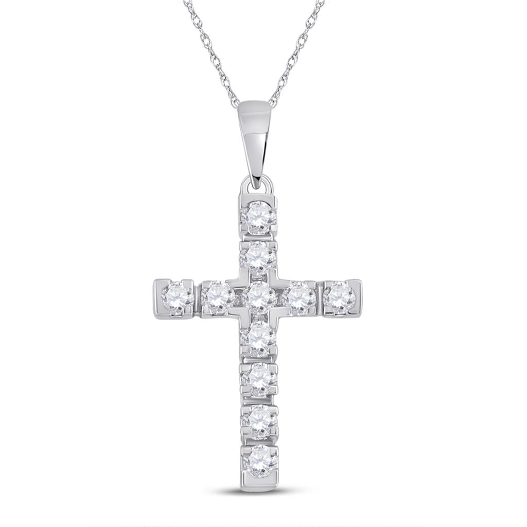 14k White Gold Round Diamond Cross Pendant 1/2 Cttw