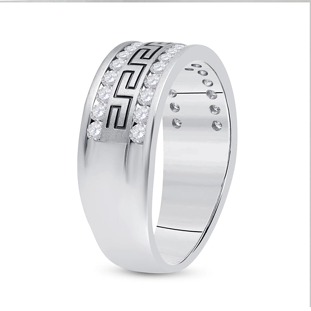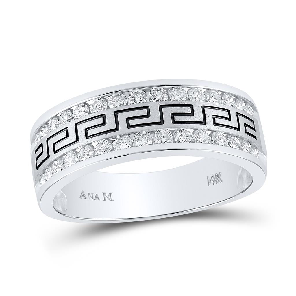 14k White Gold Round Diamond Grecco Wedding Anniversary Band 3/4 Cttw