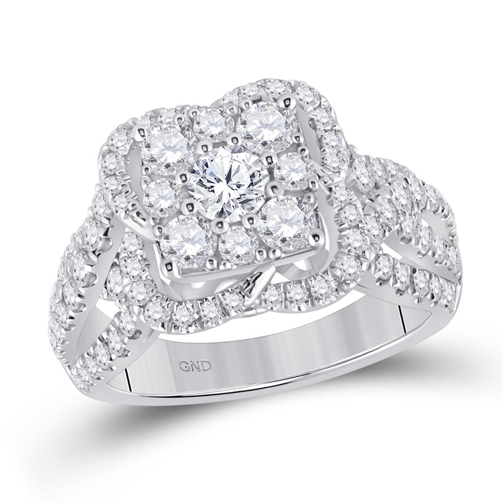 14k White Gold Round Diamond Halo Bridal Engagement Ring 1-7/8 Cttw (Certified)