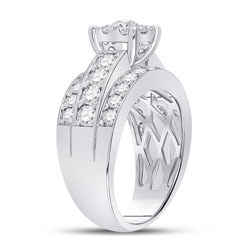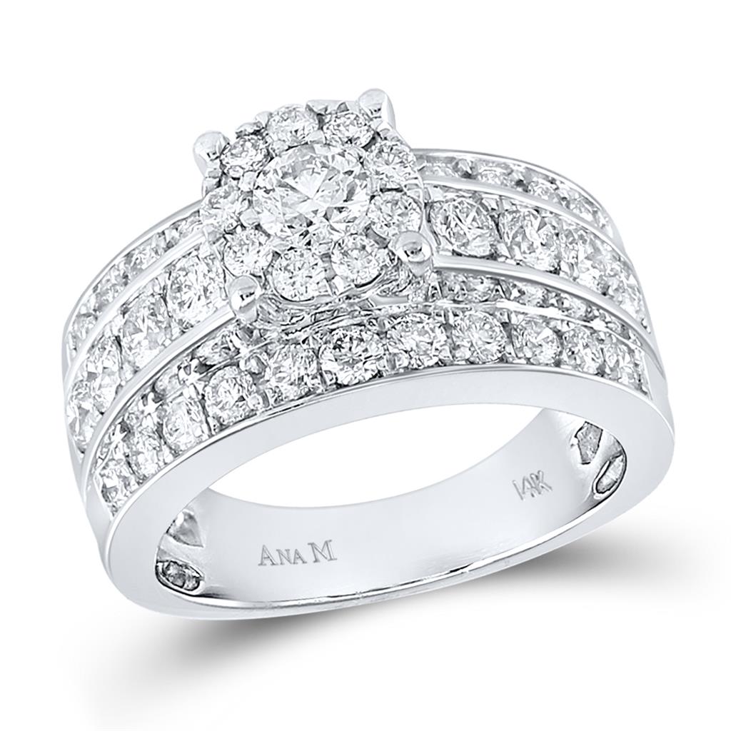 14k White Gold Round Diamond Halo Bridal Engagement Ring 2 Cttw