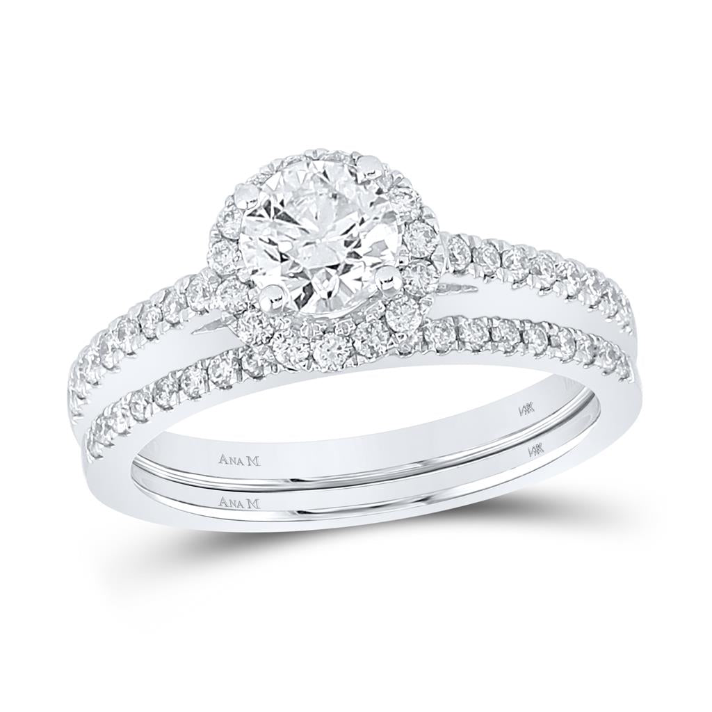 14k White Gold Round Diamond Halo Bridal Wedding Ring Set 1-1/3 Cttw