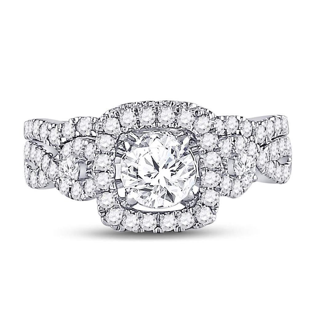 14k White Gold Round Diamond Halo Bridal Wedding Ring Set 1-3/4 Cttw (Certified)