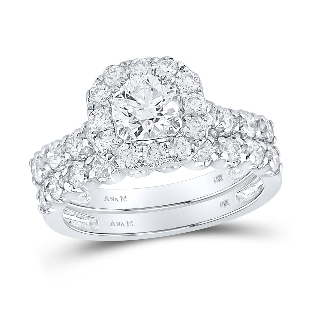 14k White Gold Round Diamond Halo Bridal Wedding Ring Set 2 Cttw (Certified)