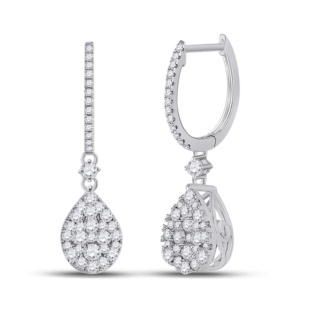 14k White Gold Round Diamond Hoop Teardrop Dangle Earrings 1 Cttw