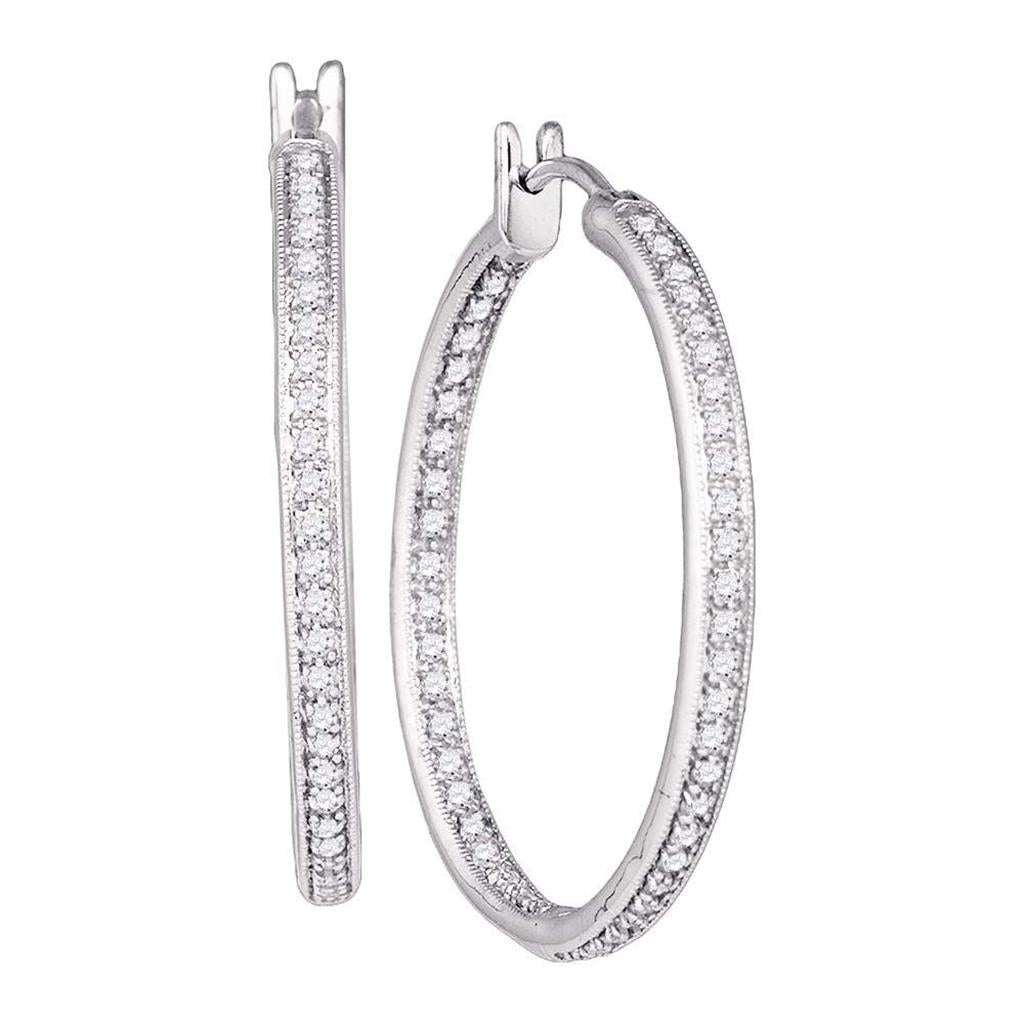 14k White Gold Round Diamond Inside Outside Hoop Earrings 1 Cttw