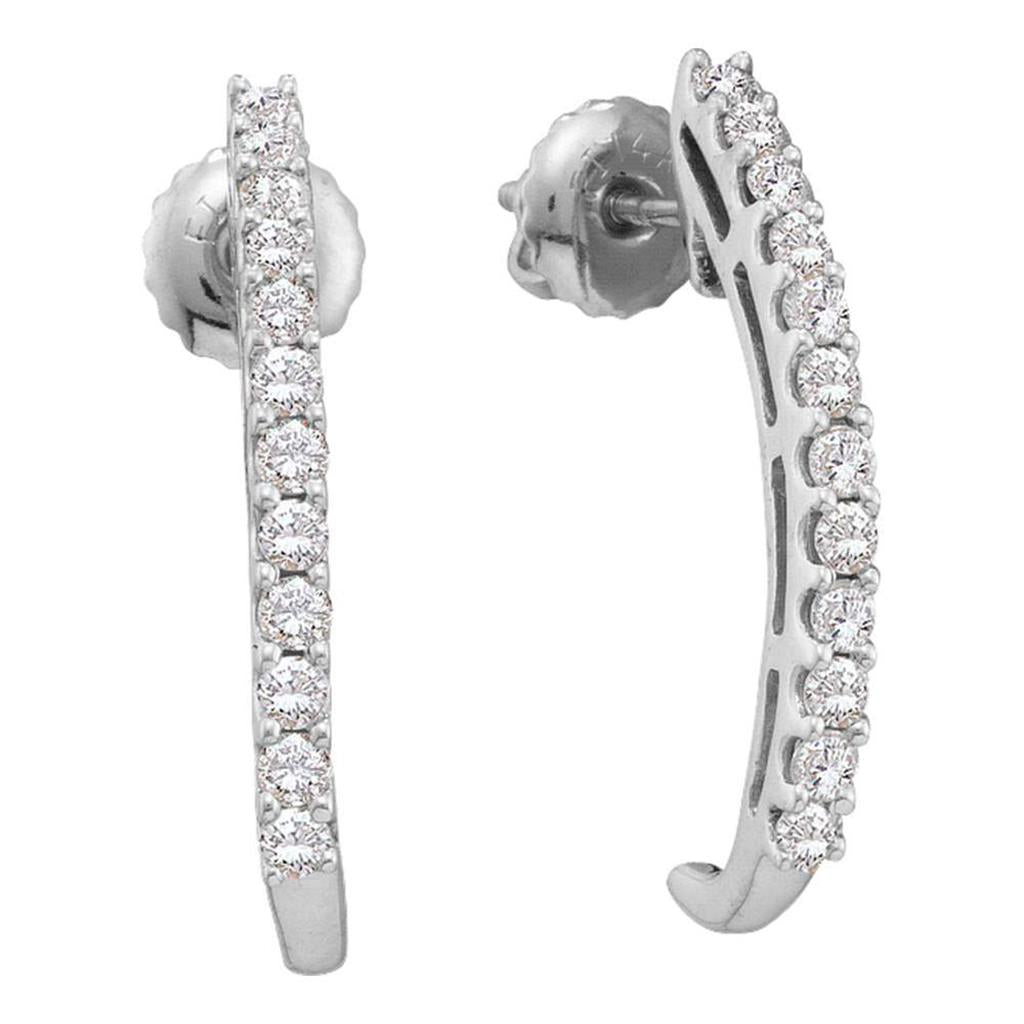 14k White Gold Round Diamond J Half Hoop Earrings 1/2 Cttw