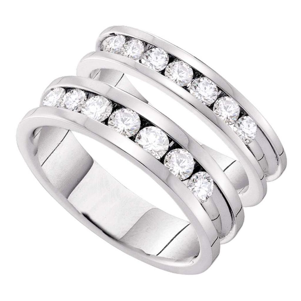 14k White Gold Round Diamond Matching Bridal Wedding Band Set 1-1/2 Cttw