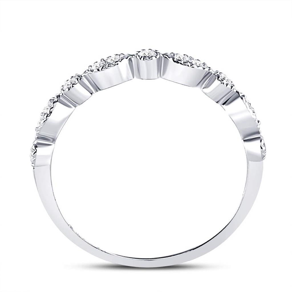 14k White Gold Round Diamond Milgrain Stackable Band Ring 1/6 Cttw
