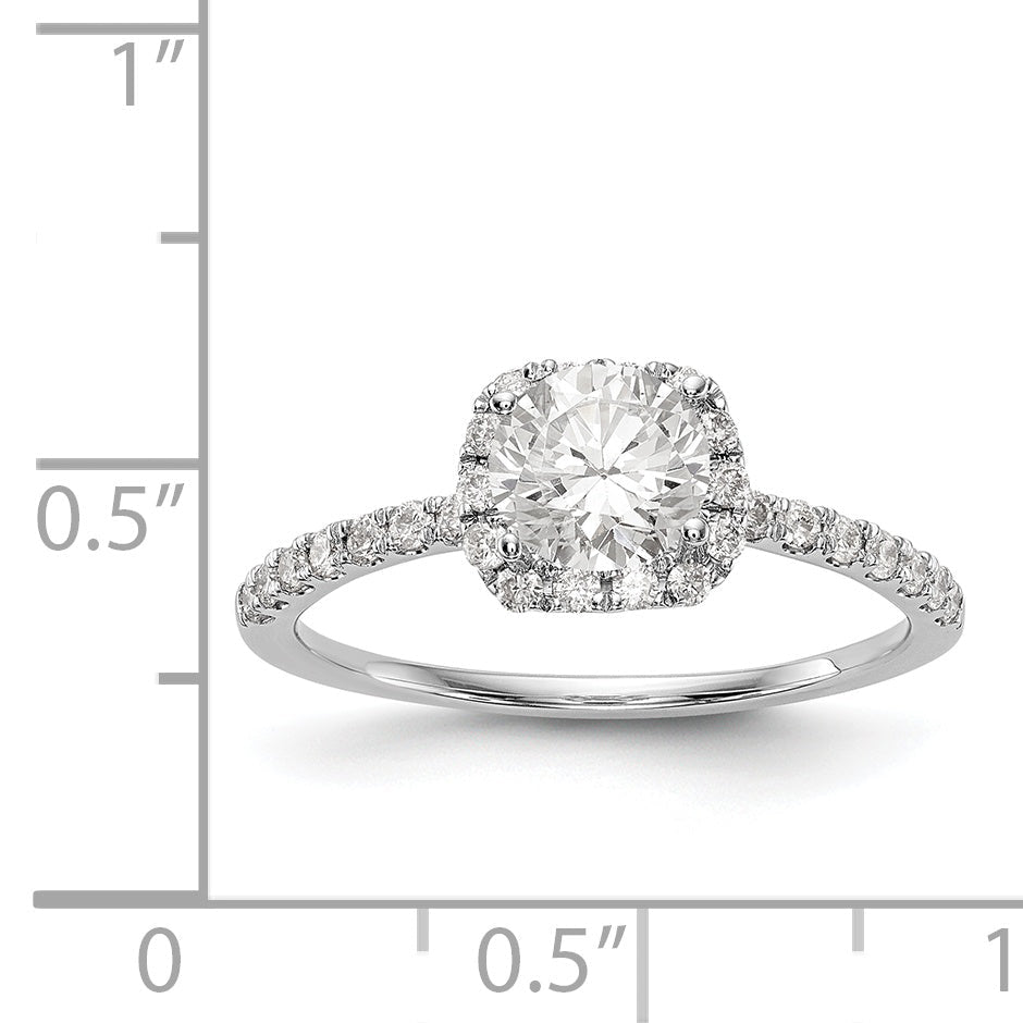 14K White Gold Round Simulated Diamond Cushion Halo Engagement Ring