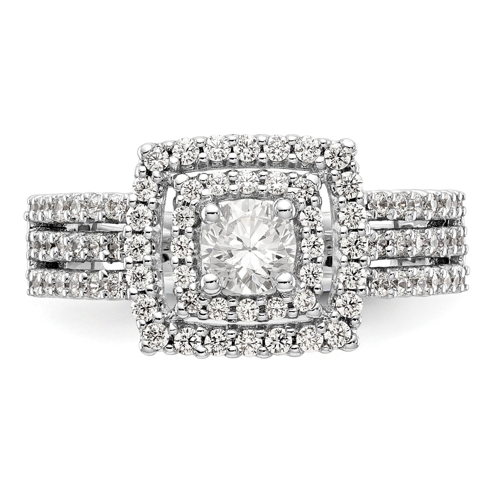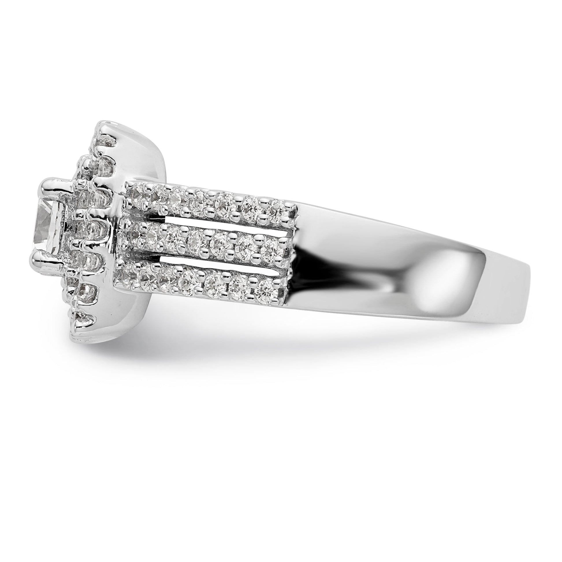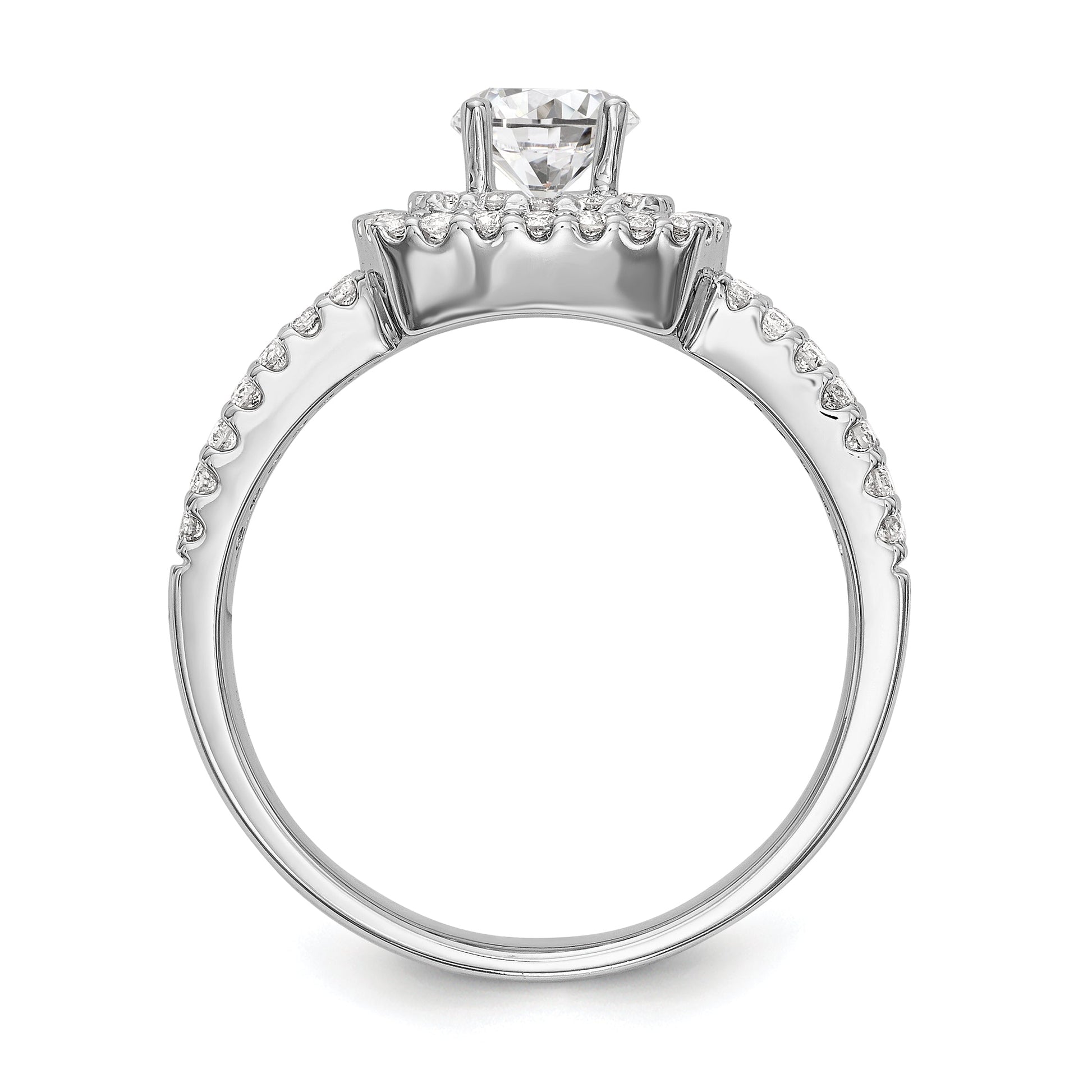 14K White Gold Round Simulated Diamond Cushion Halo Engagement Ring