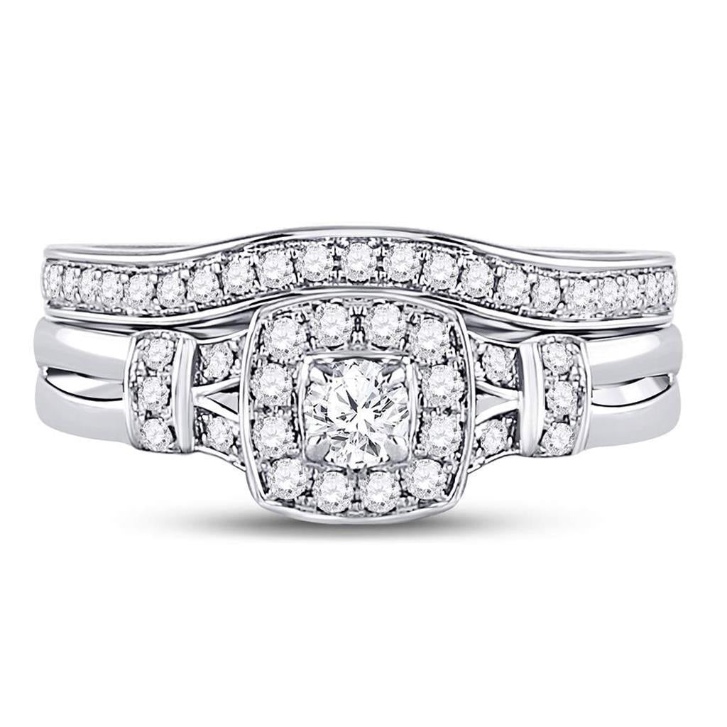 14k White Gold Round Diamond Square Bridal Wedding Ring Set 1/2 Cttw