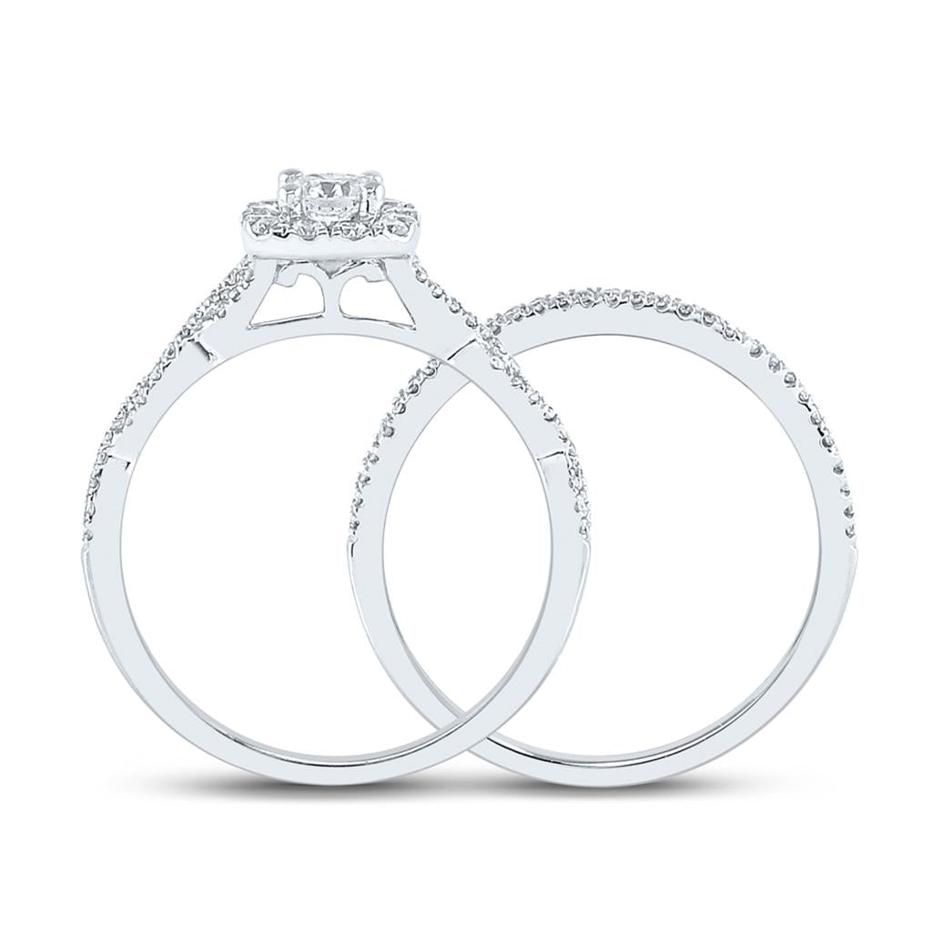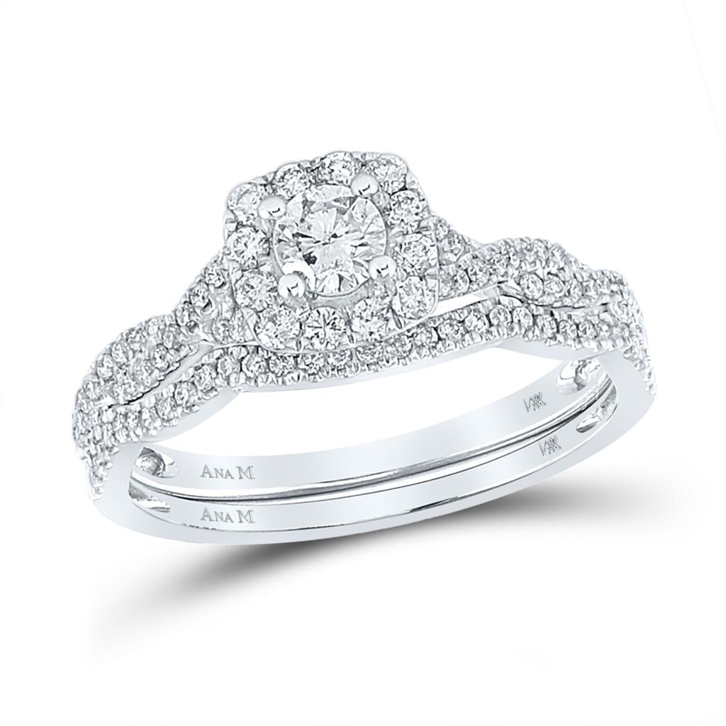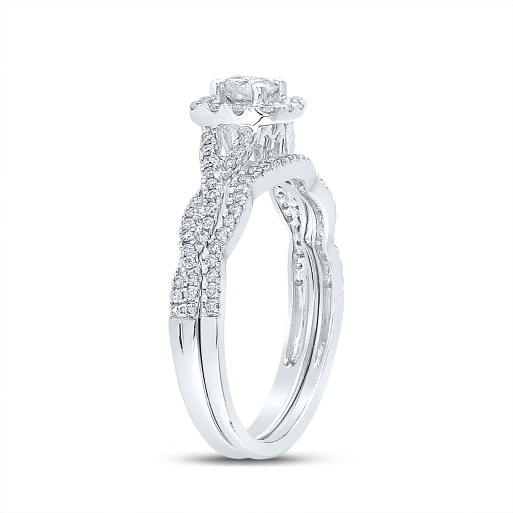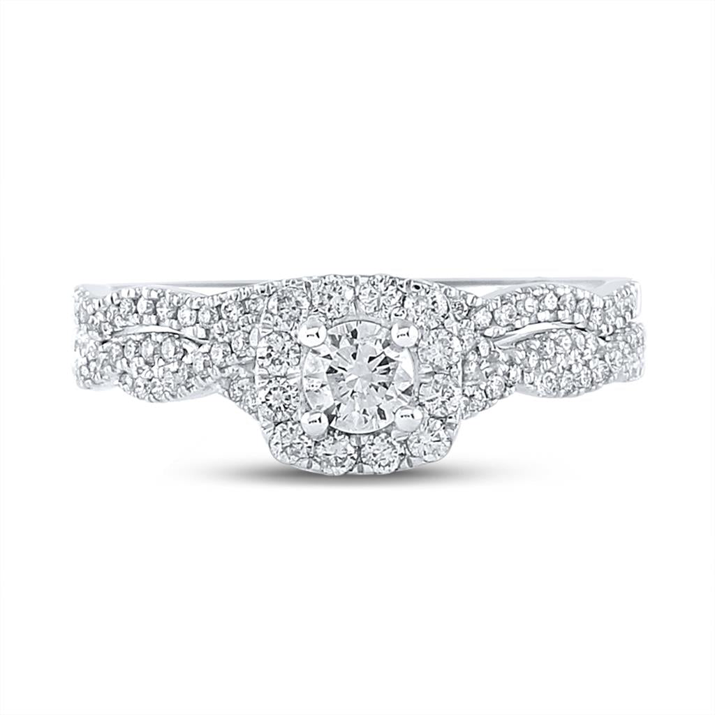 14k White Gold Round Diamond Twist Halo Bridal Wedding Ring Set 5/8 Cttw (Certified)