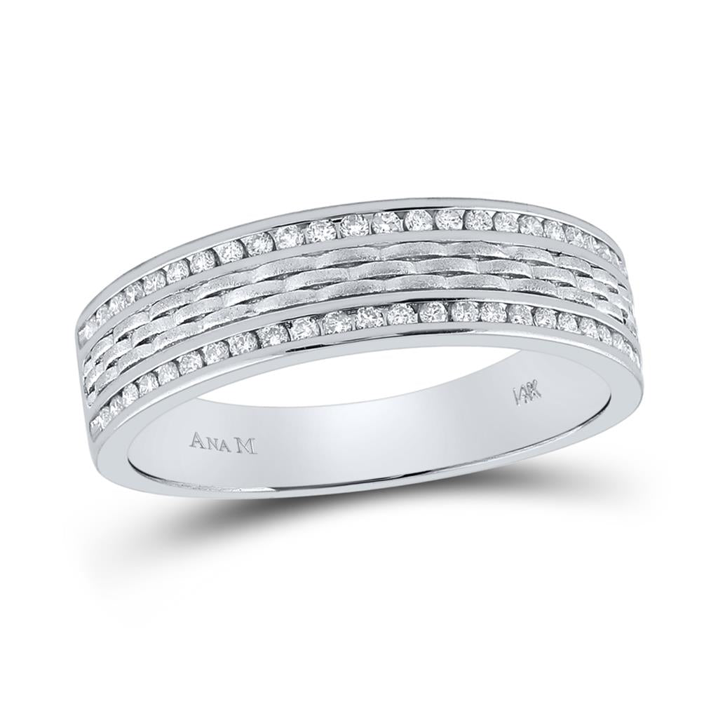 14k White Gold Round Diamond Wedding Brick Inlay Band Ring 1/3 Cttw