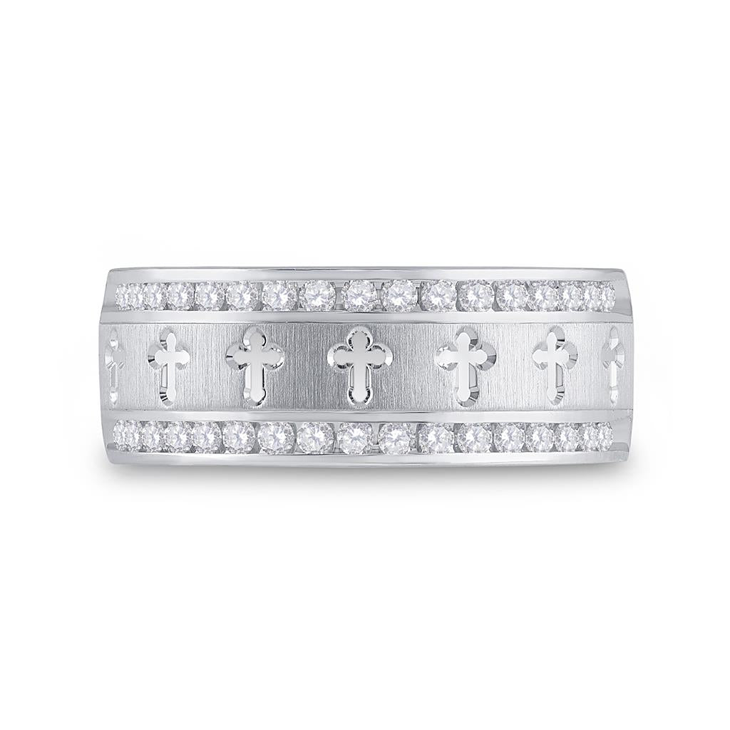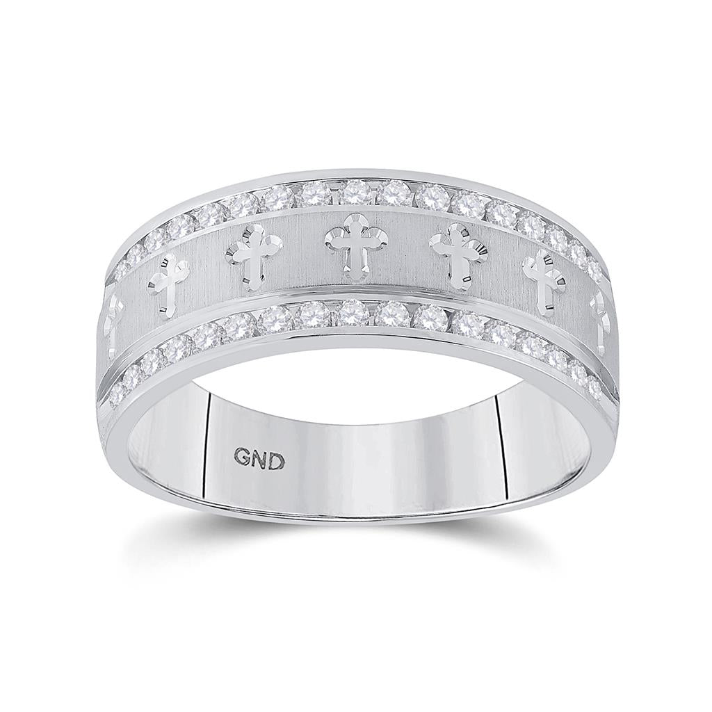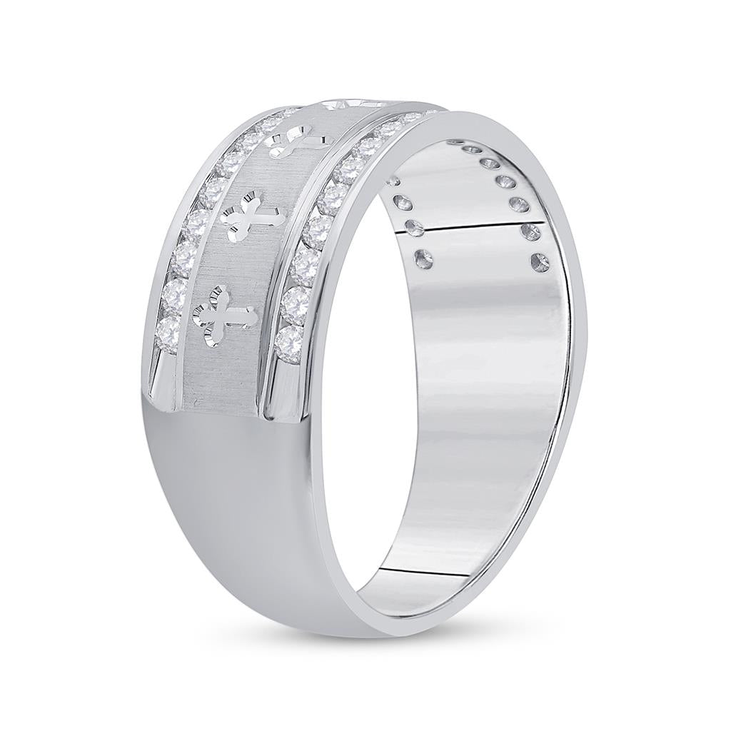 14k White Gold Round Diamond Wedding Cross Band Ring 1/2 Cttw