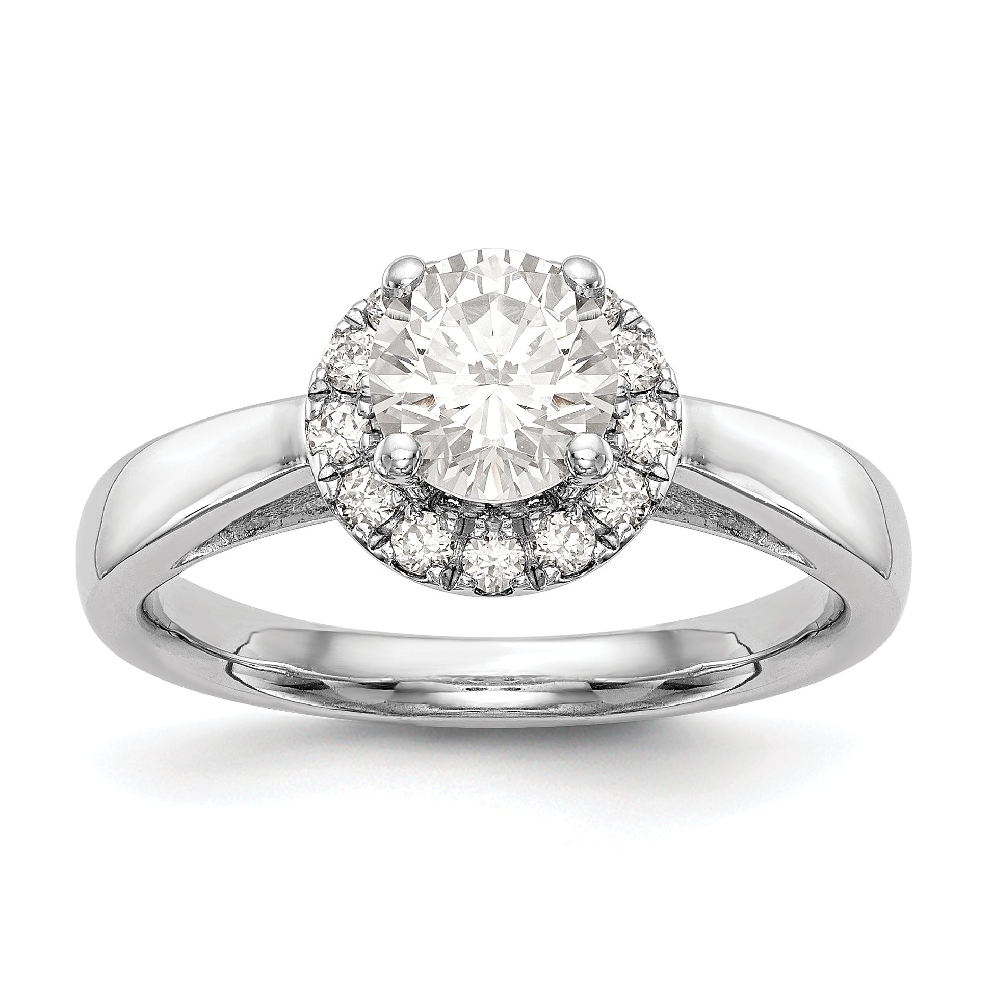 14k White Gold Round Halo Simulated Diamond Engagement Ring