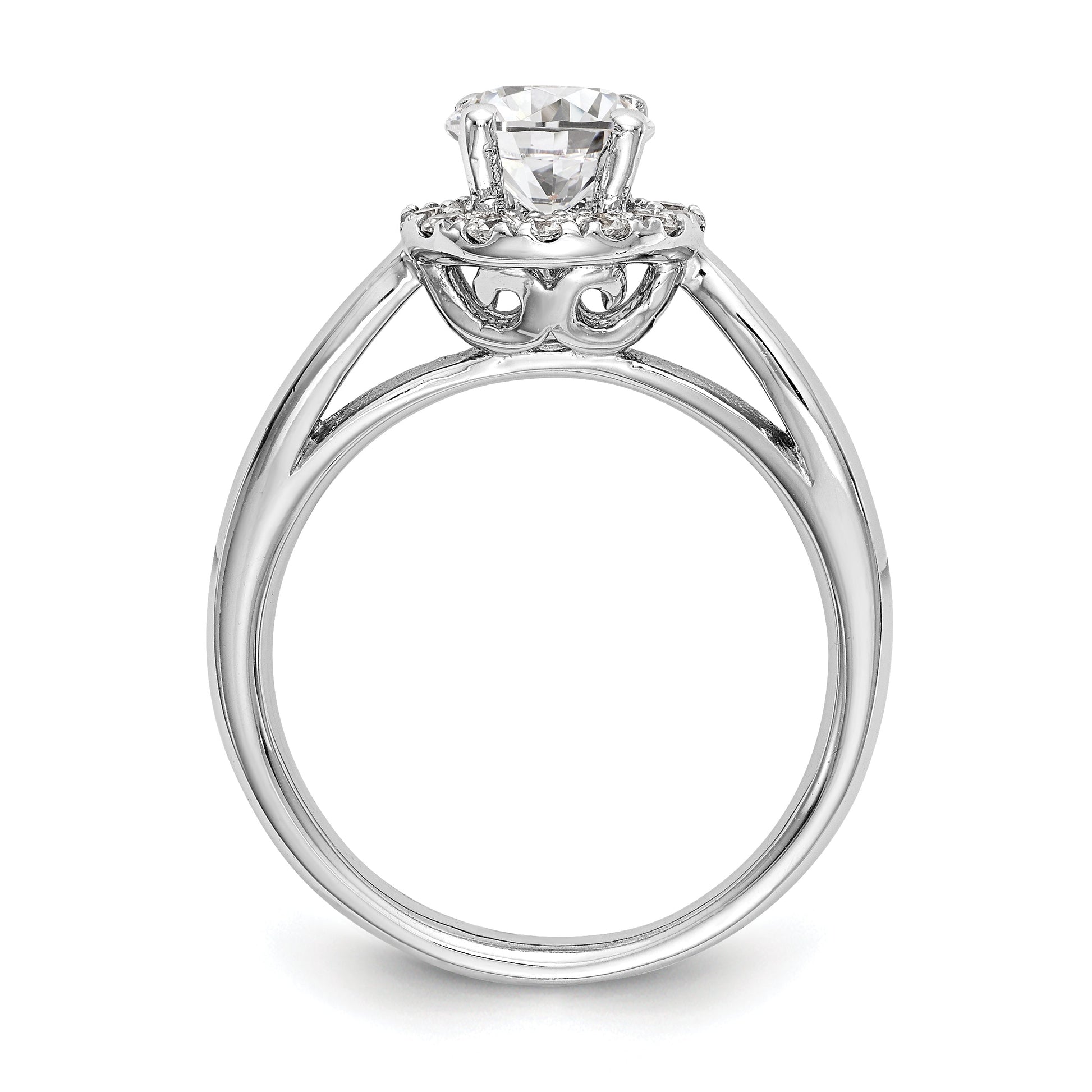 14k White Gold Round Halo Simulated Diamond Engagement Ring