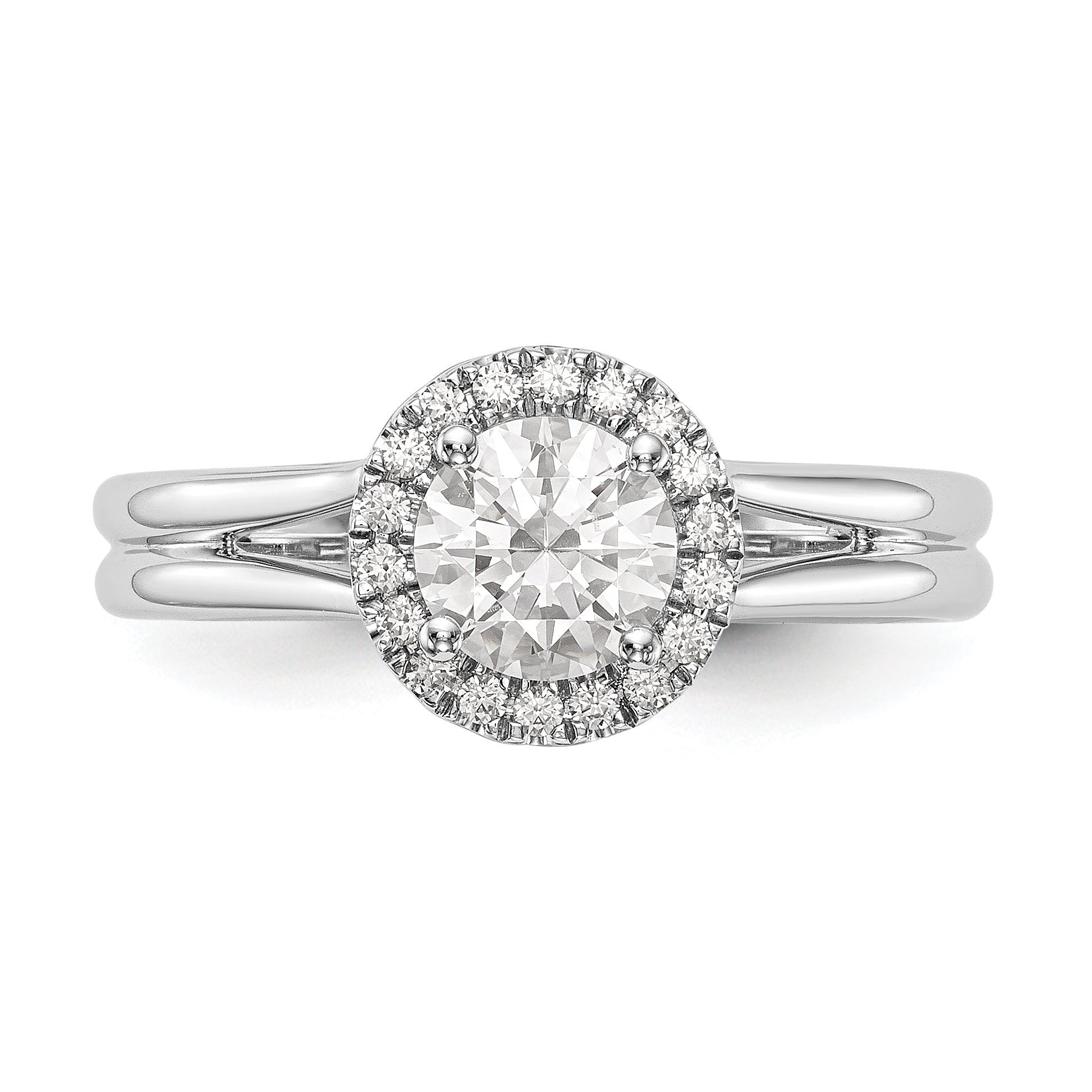 14k White Gold Round Halo Simulated Diamond Split Shank Engagement Ring