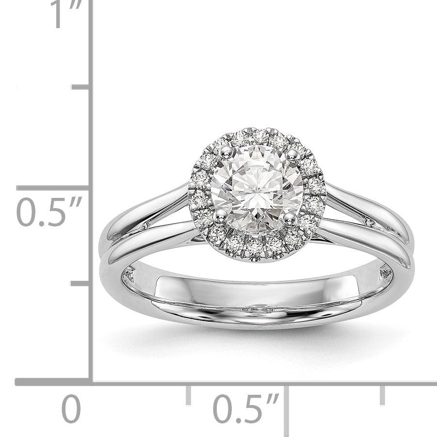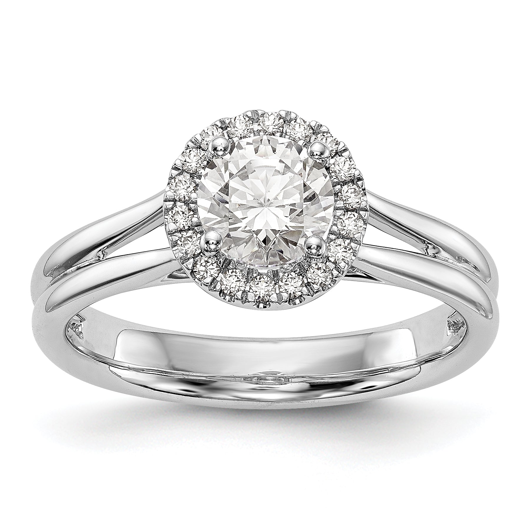 14k White Gold Round Halo Simulated Diamond Split Shank Engagement Ring