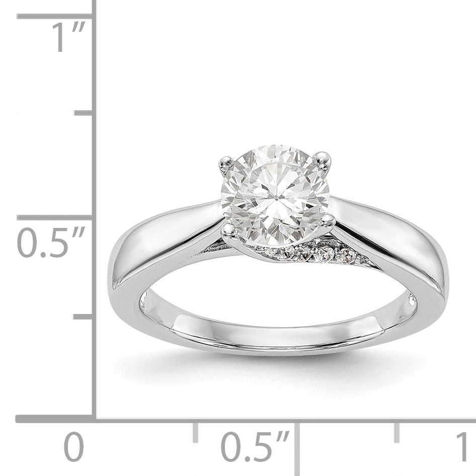 This simulated diamond engagement ring is manufactured from 3.06 grams of solid and real 14K white gold, not plated, not filled. We can manufacture this ring with genuine diamonds too....