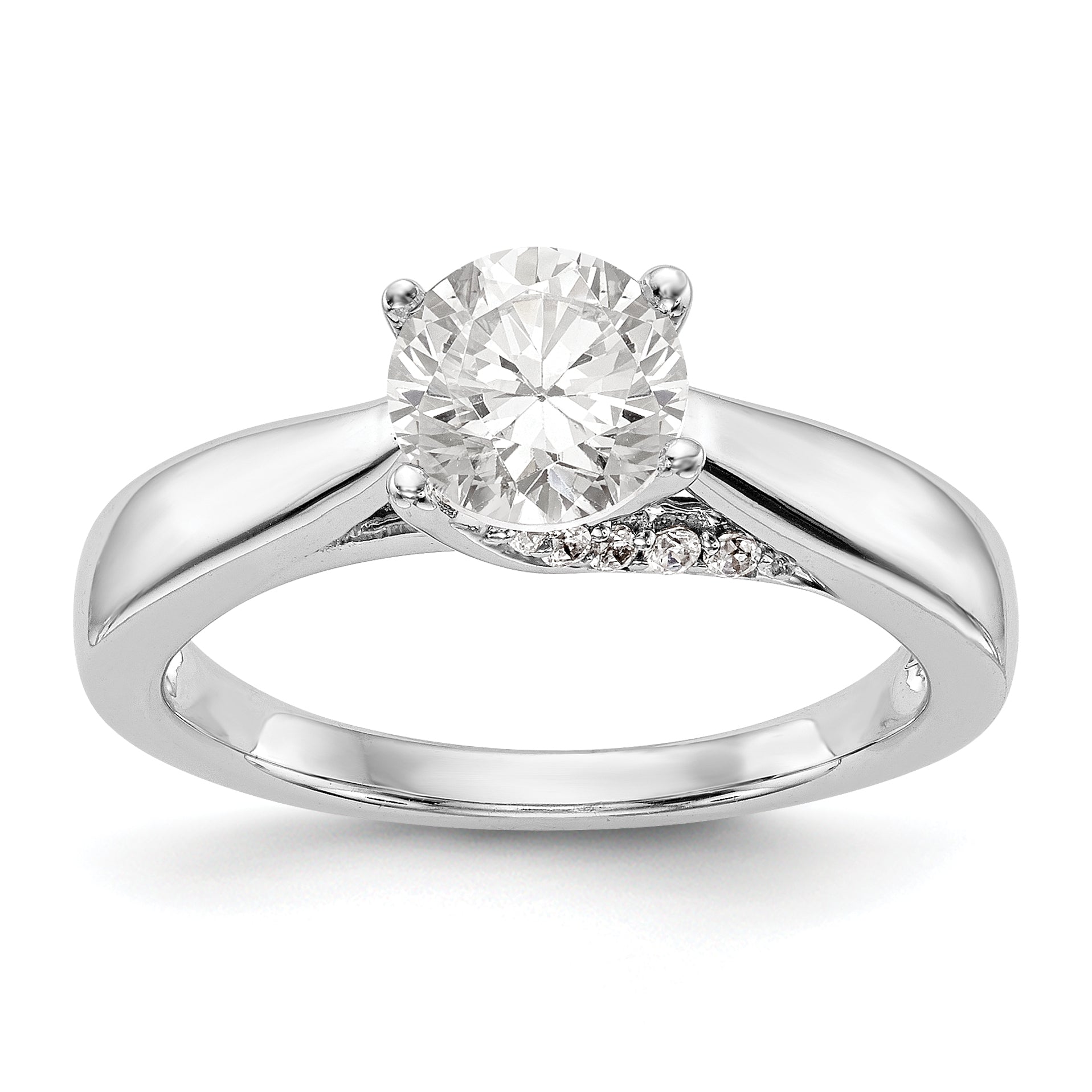 This simulated diamond engagement ring is manufactured from 3.06 grams of solid and real 14K white gold, not plated, not filled. We can manufacture this ring with genuine diamonds too. Please contact us for pricing.