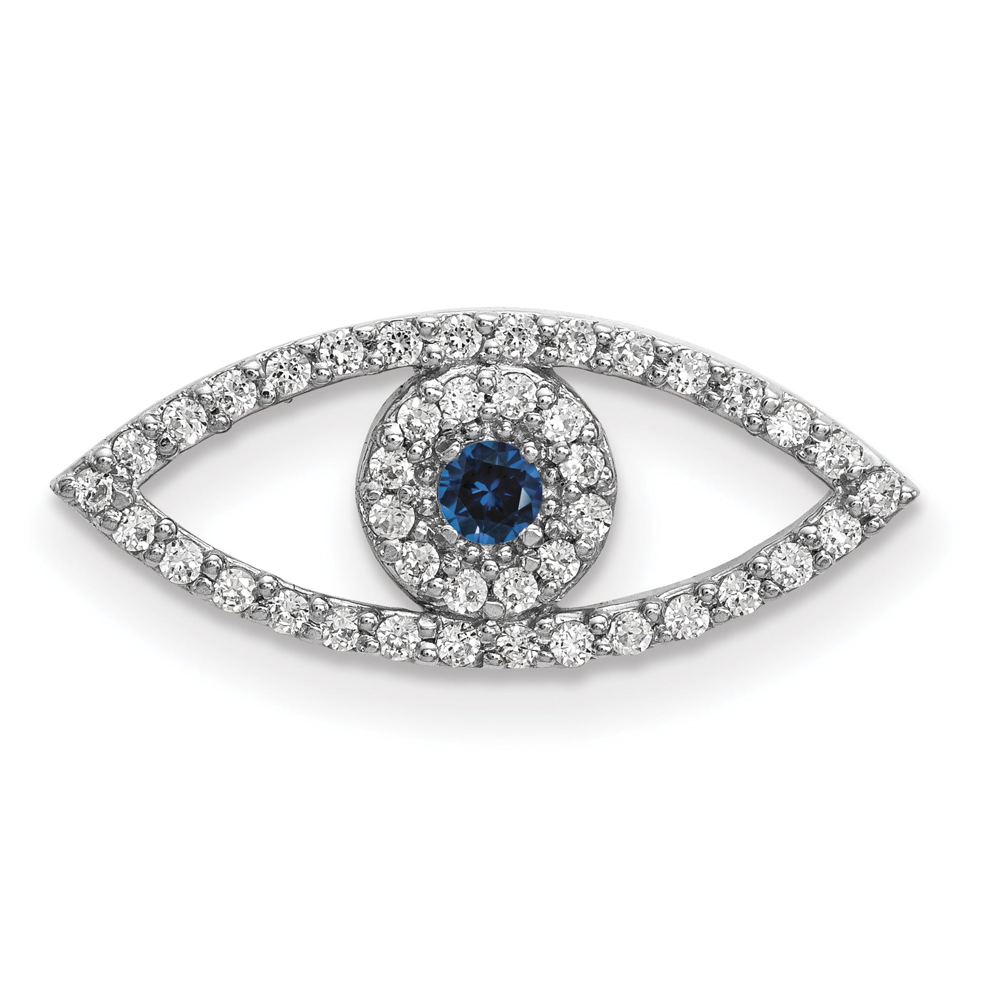 14k White Gold Small Diamond and Sapphire Evil Eye Pendant