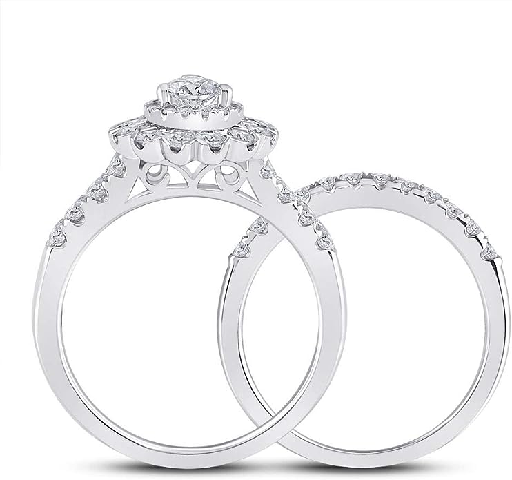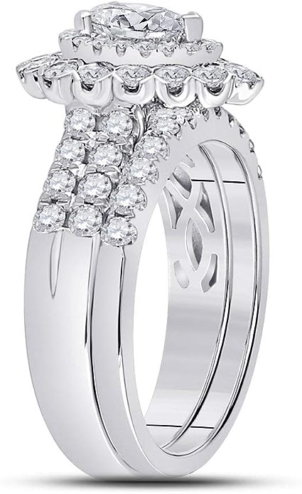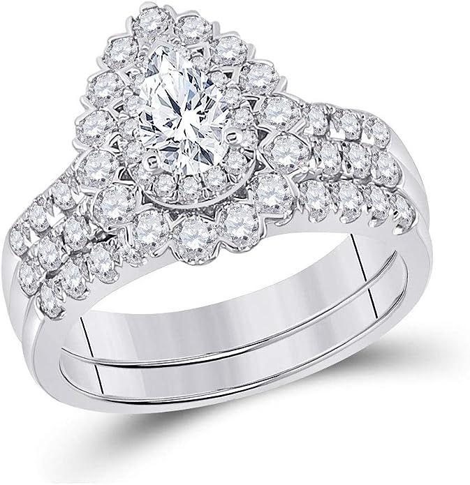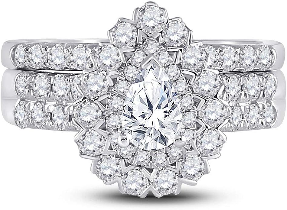 14k White Gold Solitaire Bridal Wedding Ring Band Set 1-7/8 Cttw for Women (Pear Diamond)
