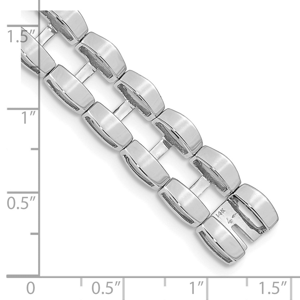 Discover the 14K White Gold Tennis Jacket Bracelets, a sleek piece of jewelry that adds style to any outfit. Crafted from high-quality 14K white gold with a polished finish, this solid bracelet shines with a rhodium plating that resists tarnish. Measuring 6.5 inches long and 11 mm wide, it offers a comfortable fit for women. Made through a cast process, the jacket design gives a unique twist to classic bracelet styles. Please note, the product is sold as a mounting only, with no stones included. Elevate your jewelry game with the 14K White Gold Tennis Jacket Bracelets, a chic choice for any wardrobe.
