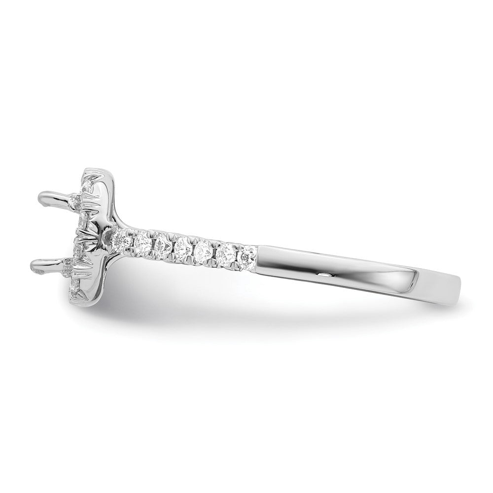 Discover the exquisite 14K White Gold True Origin 14K 3/8 Carat Lab Grown Diamond Vs D E F Semi Mount Cushion Halo Engagement Ring. This ring features a stunning cushion-shaped center stone, accented by 12 smaller round lab-grown diamonds and two additional side stones, all with VS clarity. Crafted from polished 14K gold, it boasts a timeless design with a sleek open back and a silver-tone finish. Perfect for your special moment, the ring comes in a gift box and can be sized up or down for a perfect fit. Truly a beautiful symbol of love.