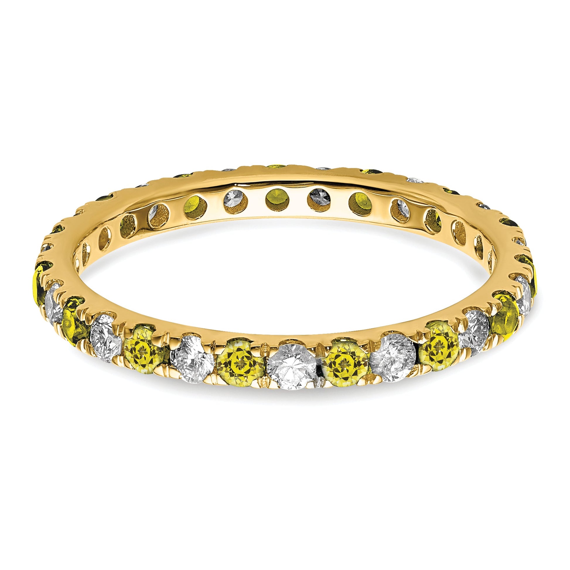 The 14K Yellow Gold 1/2 Carat Lab Grown Diamond VS/Si+ G+ and Created Sapphire Size 5.5 Eternity Band is a stunning piece for your collection. It features 14 lab-grown diamonds and 14 sapphires, all set in polished gold. The diamonds weigh 0.05 ct each with clarity of VS or SI+, and the sapphires are vibrant and well-made. This solid band measures 2.25 mm wide and has an open back for a comfy fit. Perfect for adding a touch of elegance, the 14K Yellow Gold 1/2 Carat Lab Grown Diamond VS/Si+ G+ and Created Sapphire Size 5.5 Eternity Band offers beauty and value that lasts.